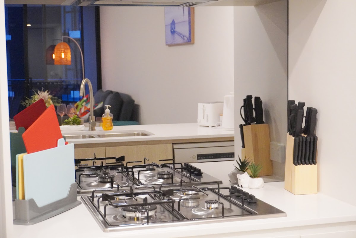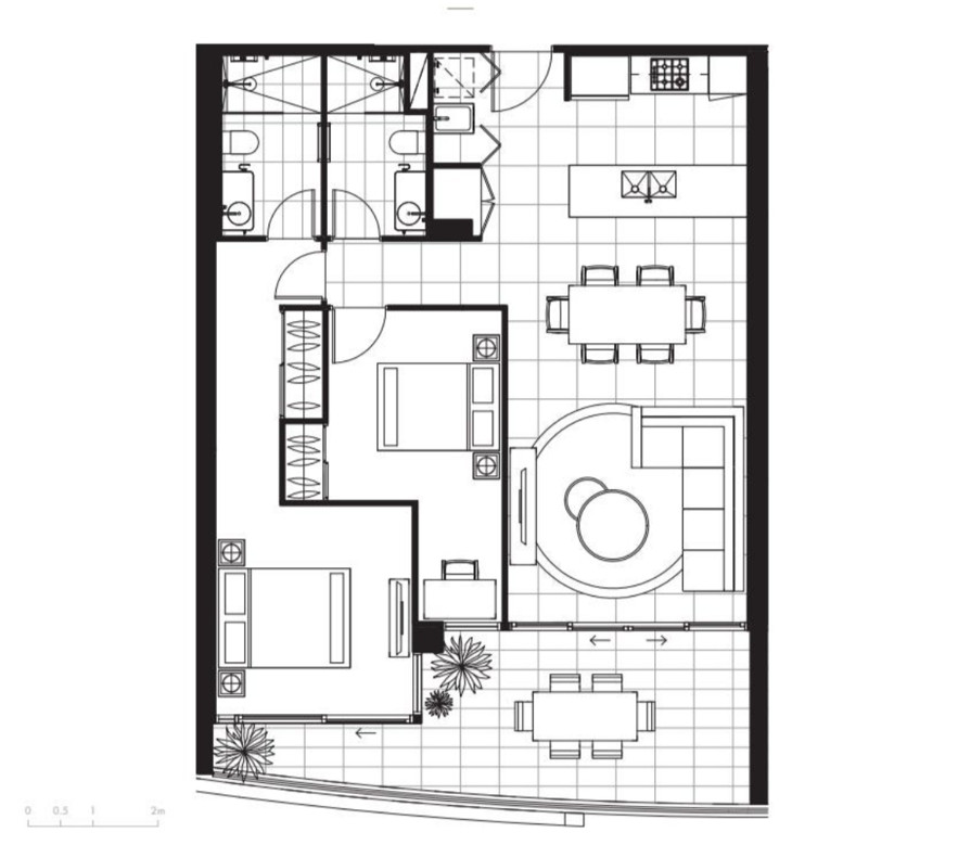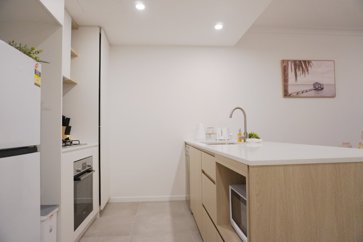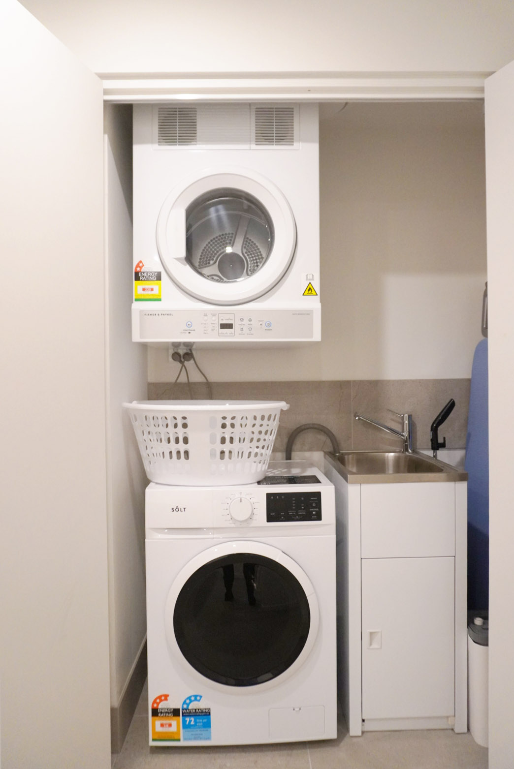 This unit is located at level 2 boasts a generous 104 square meters of living space. Integrated laundry with clothes dryer in the storage area. The modern kitchen is equipped with stone benchtops and modern tapware, fridge, microwave oven, and dishwasher add convenience to your everyday life.