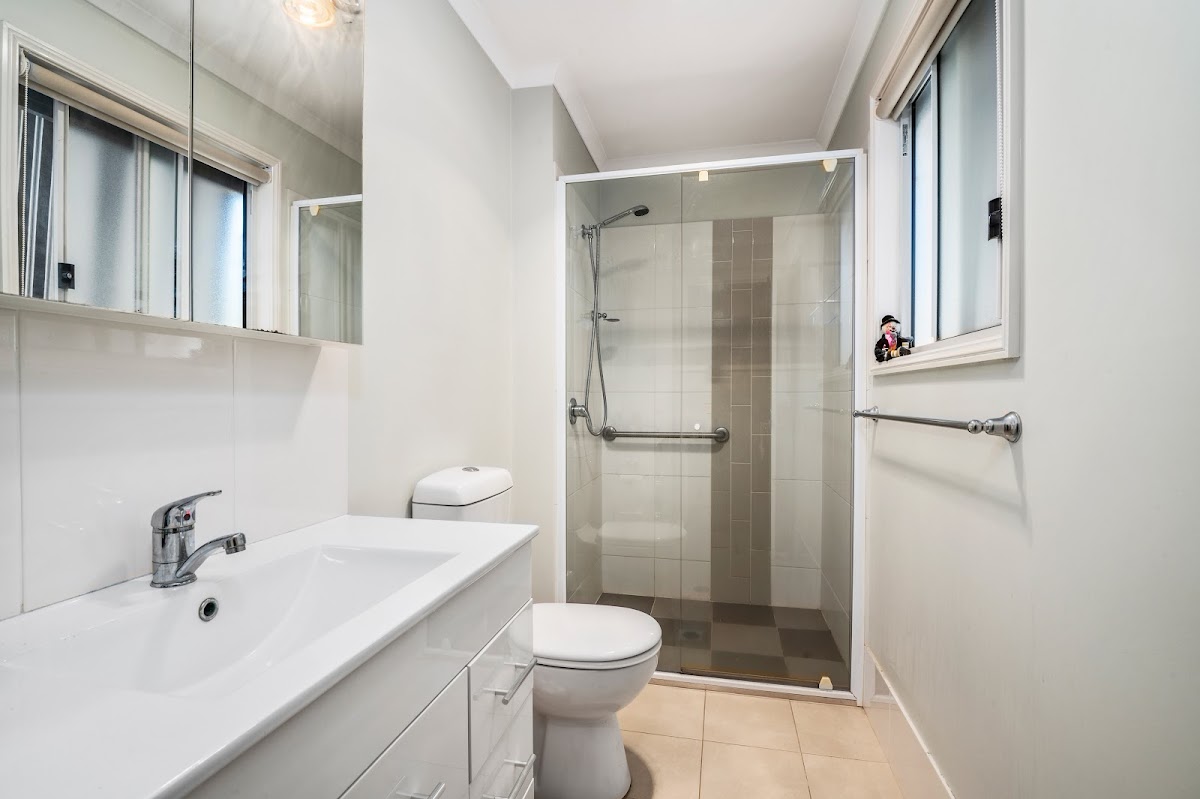 The main bathroom is modern, and the generous laundry has direct access to the outdoor area.