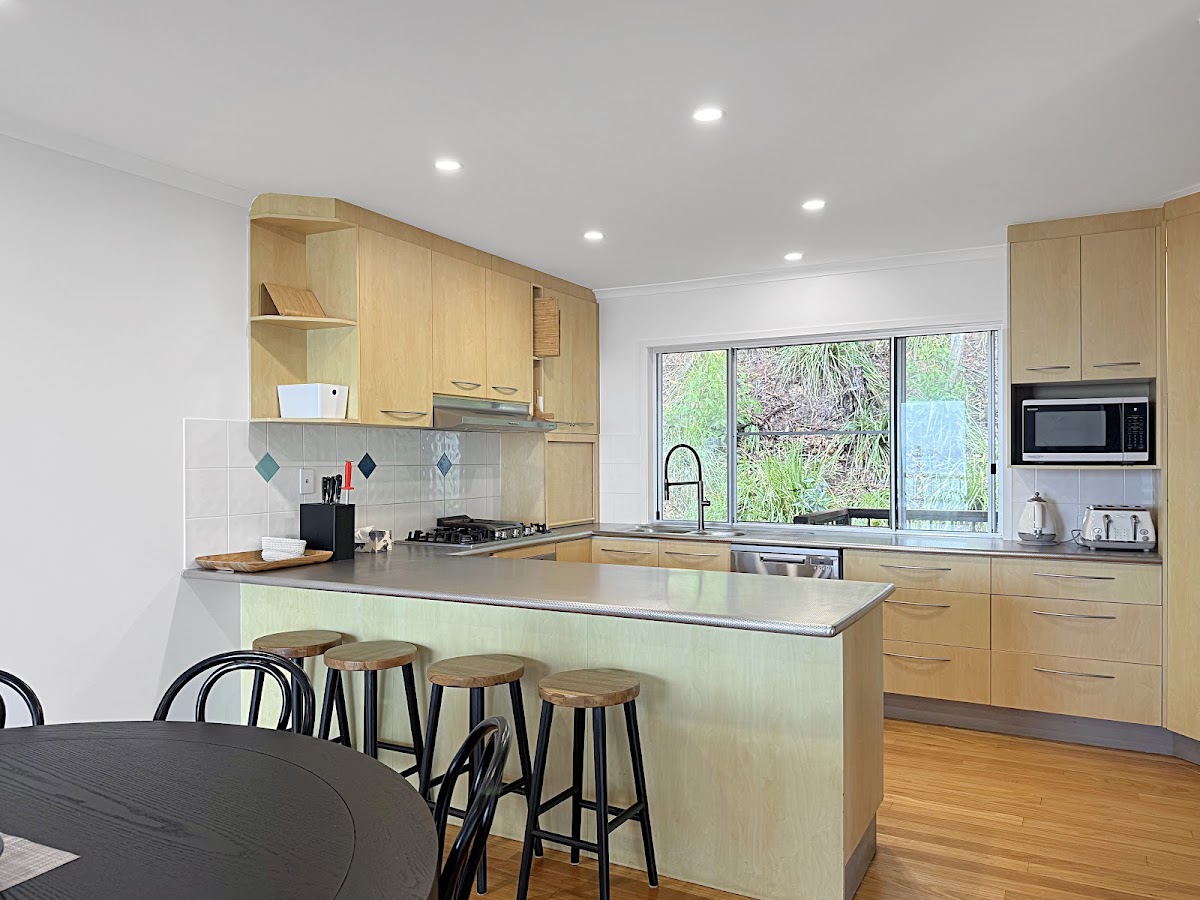 Spacious kitchen with wide benches and generous cabinetry