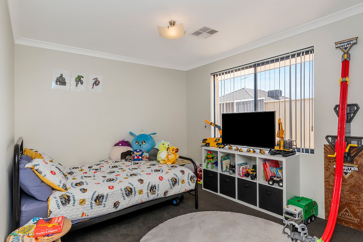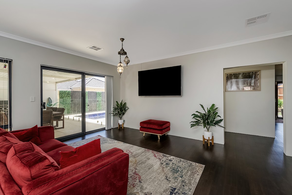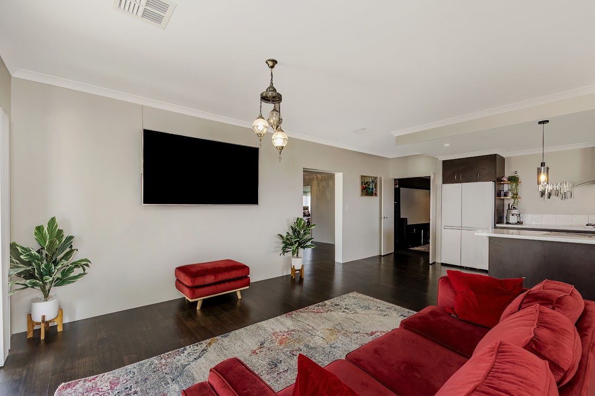 The property features four good sized bedrooms all complete with built in robes, freshly painted walls, stylish carpeting and ducted heating/cooling, bedroom 4/potential office or games room has wooden floors, a wrap around office style desk and is a great size! The master bedroom is the star of the show, it is a great size and features a spacious walk in wardrobe, beautiful flooring, roller shutters and a modern good sized en suite with extra large shower, his and hers double sink and vanity and WC. The property also features two good sized living areas and a fully blacked out, carpeted cinema room complete with a projector and giant screen making it perfect for a family looking for a kids retreat separate to the living areas.