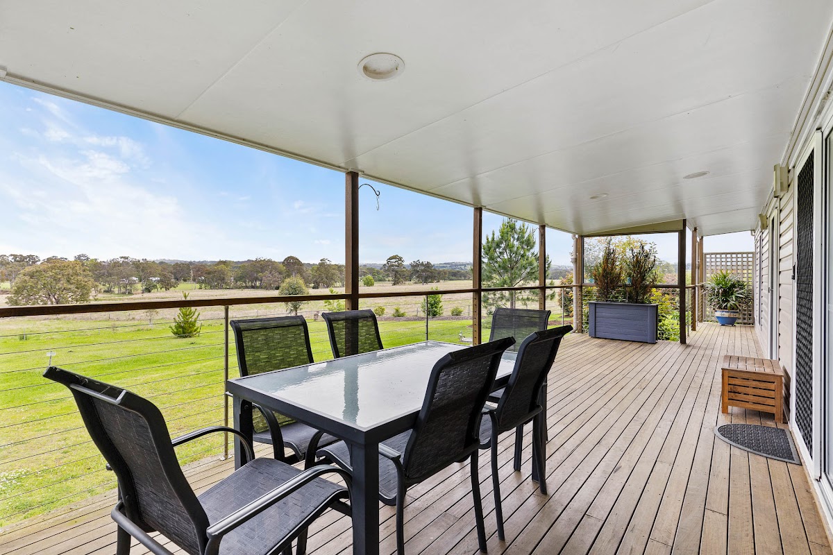 From the large timber deck, one can enjoy uninterrupted views over the neighbouring cattle property, and in the distance the rolling hills of the Crow Nest Hinterland.