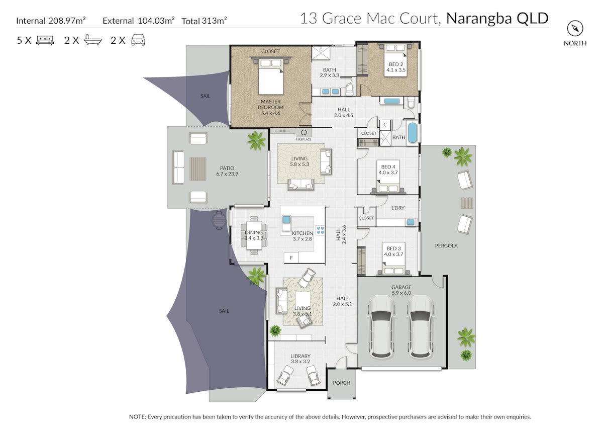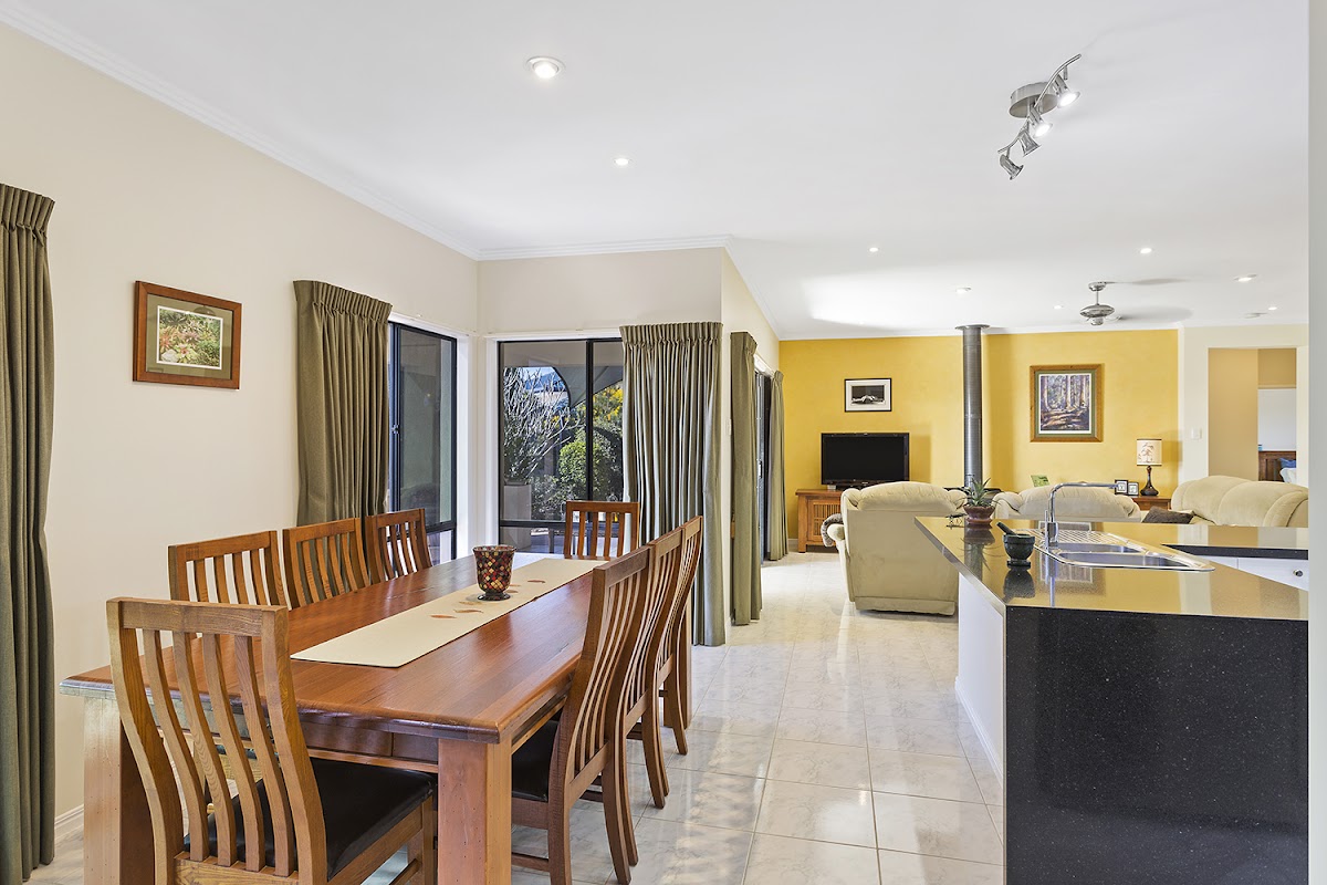 Featuring two separate living areas, one library, four outdoor spaces (all weather-proof) and 1308 square metres of land; there’s room for everyone to enjoy their own space in this lovely home. The property also boasts fruit trees galore, a vegetable garden, herb garden, 3000 litre rain water tank, green house, garden shed, and room for boat or van.