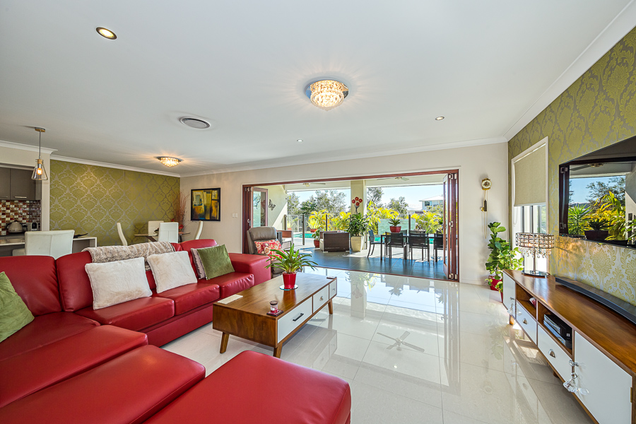The kitchen is a chef’s delight and boasts a separate pantry with storage cupboards, Caesar stone bench tops, 90 cm oven and 5 burner gas stove. Overlooking the family and dining area to the 12 x 3 metre swimming pool and park lands beyond, this is a great place to relax at the end of the day. When purchasing this home you will receive membership to the Pacific Harbour Golf & Community Club which includes entry to the golf club and use of the 25 metre swimming pool, gym and tennis courts. Look at these additional features: