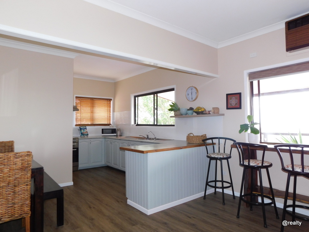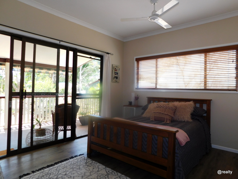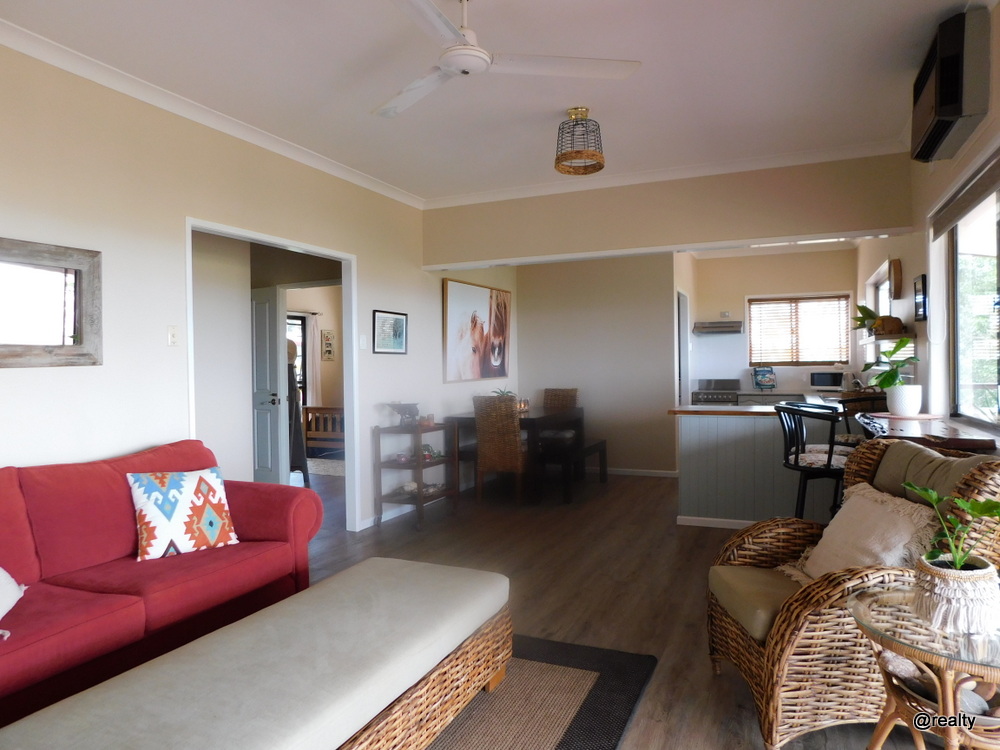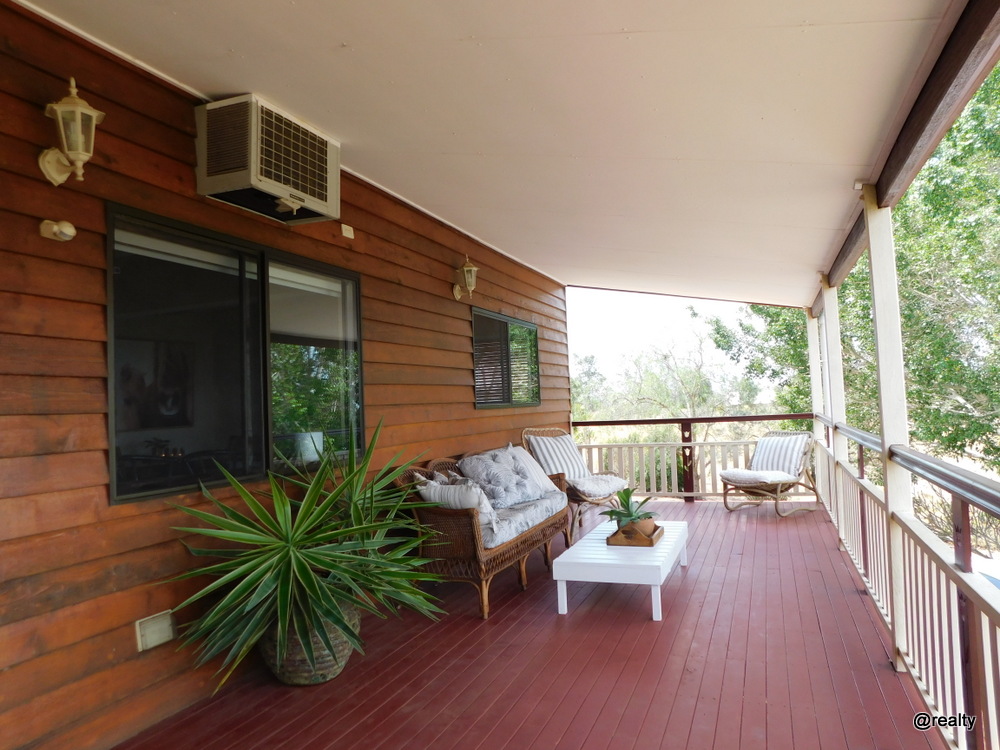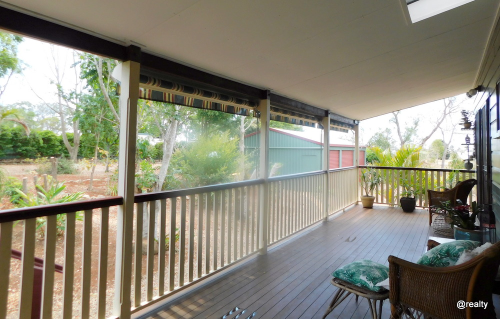 The house is on nearly 3/4 of an an acre, high set at the front but has easy access at the rear with only a few steps onto the lovely cool back verandah.