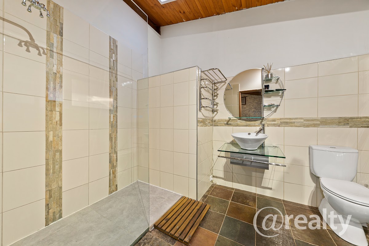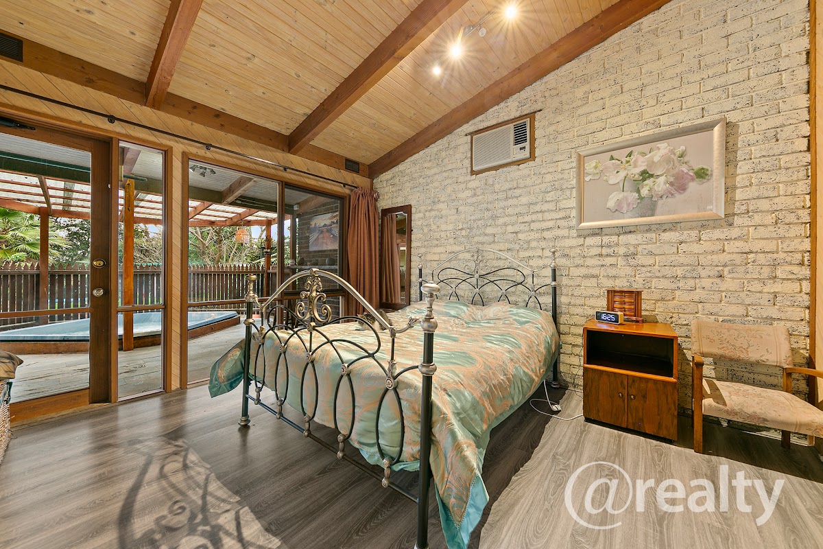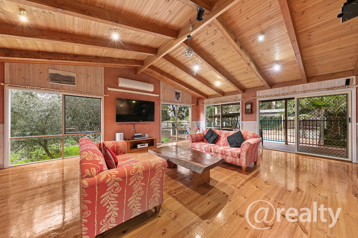 Additional features of the property include a bungalow, ideal for guest accommodation, a home office, or a teenager’s retreat. Parking is ample with a single lock-up garage with a workshop, a double carport, and two driveways providing plenty of off-street parking. Inside, the cathedral ceiling with exposed beams enhances the sense of space, complemented by gas ducted heating and multiple split system air conditioners. The home also includes a large laundry room, solar panels, and abundant garden shedding, while still offering plenty of garden space for green thumbs.