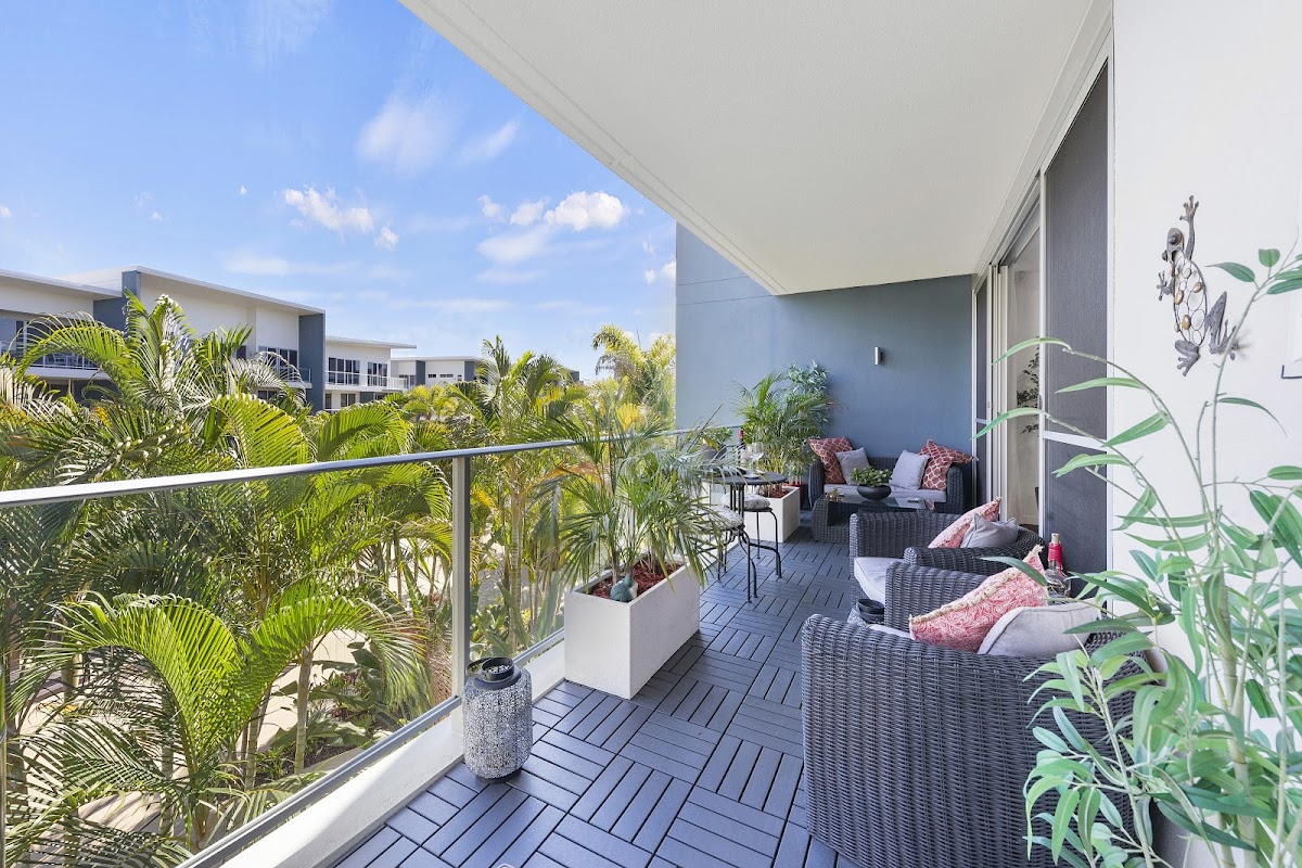 Stylish living at its best, apartment 1306 located on level 3 of the fabulous Azzura Greens Resort in the exclusive Hope Island Resort. This stunning apartment over looks the amazing lagoon pool area and offers outstanding value for money being the best presented and complete apartment in the Resort. Featuring 2 generous bedrooms both with en-suites and built in robes. Powder room with feature wall, separate dining, open plan living, modern kitchen with stone bench tops, built in “Brand New” Bosch oven, electric cook top, dishwasher, new wine fridge, generous laundry and balconies off every room this really does blow the rest away. But we haven’t finished yet !!