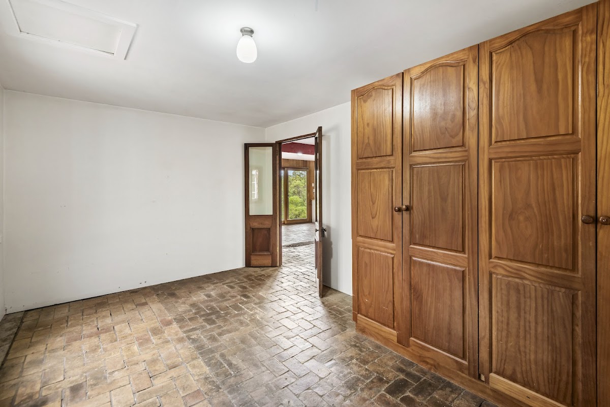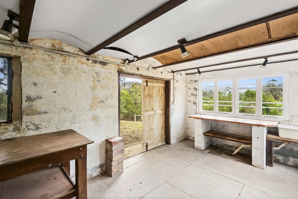 The driveway quickly splits after entering which gives both abodes a sense of privacy. The main house has a breathtaking outlook over the valley which has been well captured with the french style viewing deck which has a cellar/art studio below. It has brick floors, a wood + combustion heater, spilt system air condition and viking sliding doors. The house is in its original condition though is well built. There is a large retaining wall at the rear which is great for parking, and has strong potential to make lots of extra storage if you were to enclose it with a roof and one wall. It was just recently rented for $420 p/w which has potential to increase the rent slightly to $440-$450p/w.