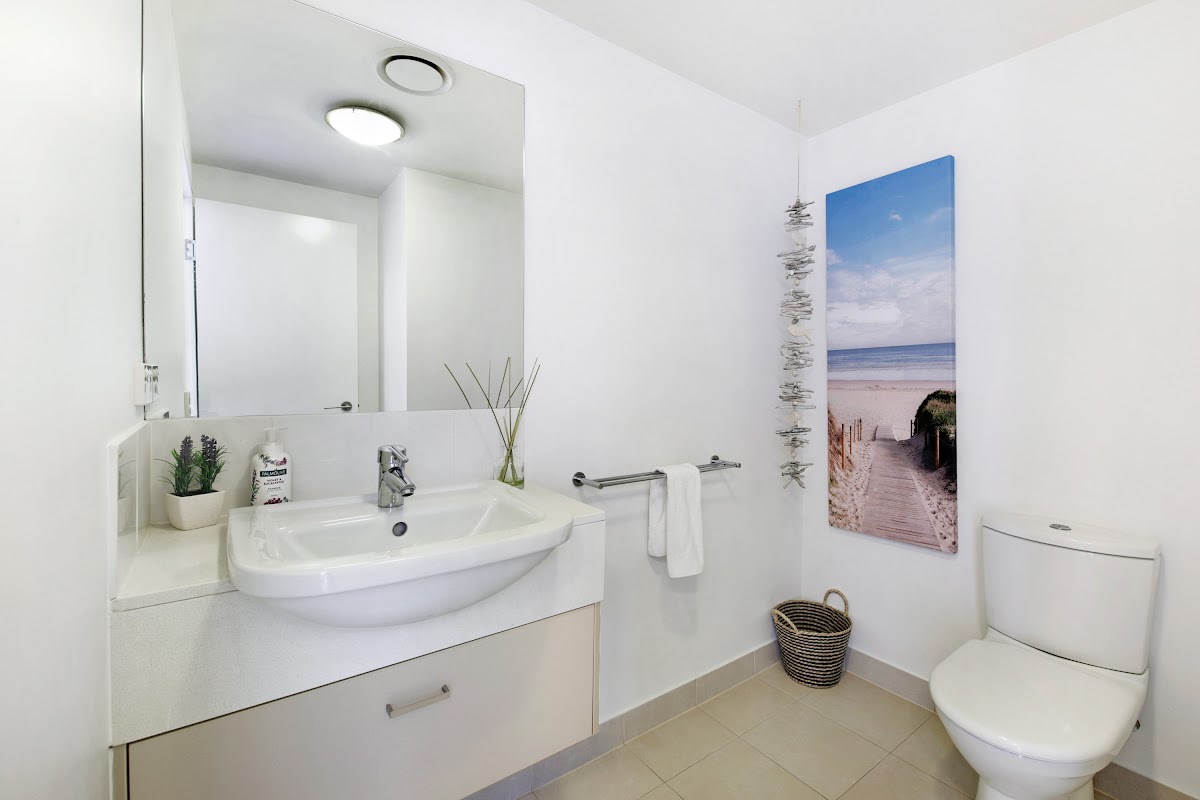 The modern kitchen features stone bench tops and quality appliances, open plan living area looking directly out to the pool area whilst providing good privacy from those around you. Spacious bedrooms both with en-suites and the master its own his and her robes. Vinyl flooring planks had recently been laid throughout adding that little touch of class to the already fantastic apartment. The laundry provides generous storage and the balcony is perfect for chilling out on and enjoying the tranquility that this apartment has to offer.