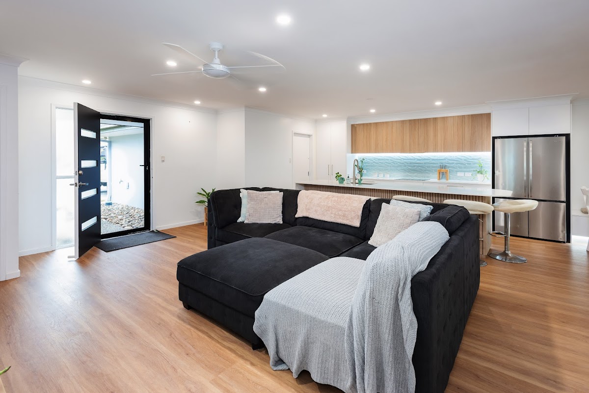 Light-filled, open-plan living and dining area with air-conditioning and LED downlights