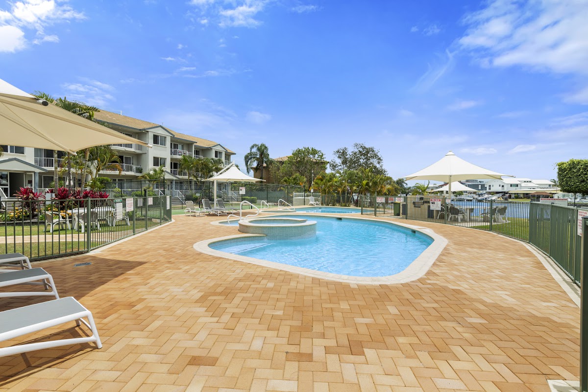 With a range of onsite facilities including two inground pools – one heated for all-year comfort, two spas, communal BBQ areas, landscaped tropical gardens, tennis court, and marina style pontoon for fishing and launching kayaks/paddleboards; keeping fit and active couldn’t be easier, you don’t even need to leave the premises.