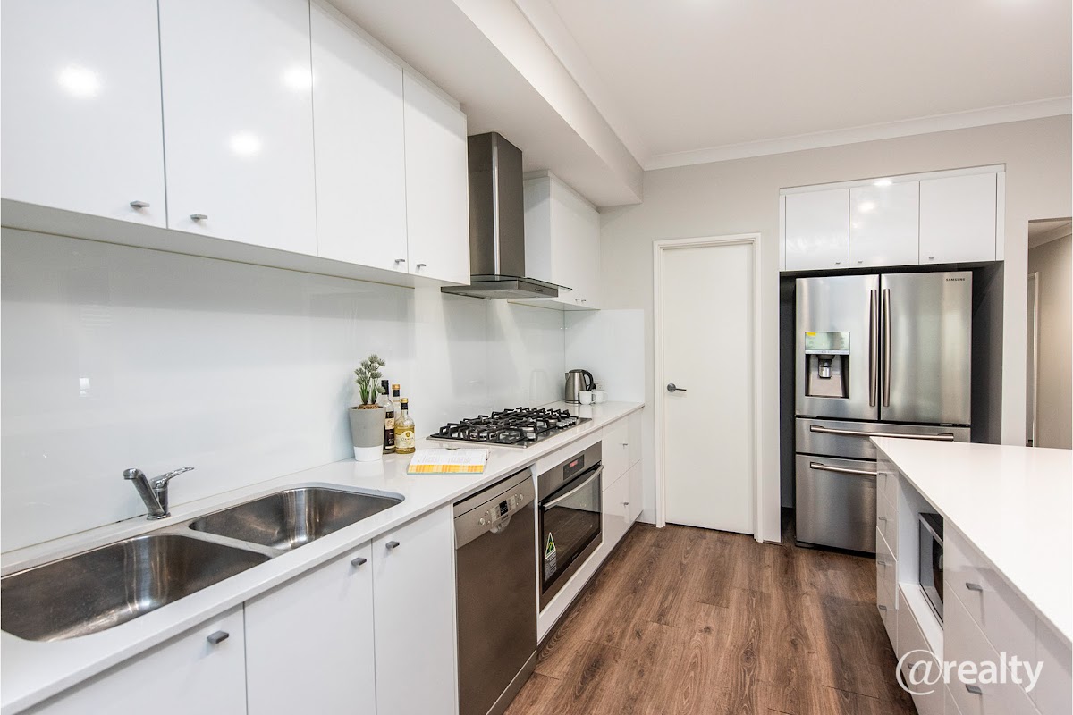 -Stunning big gourmet kitchen with endless sparkling white stone tops & plenty of cupboard space.Quality branded stainless steel appliances including dishwasher stove top range hood under bench oven.Fridge recess with plumbing for water & ice .Microwave recess & pantry.Extra wide & long breakfast bar