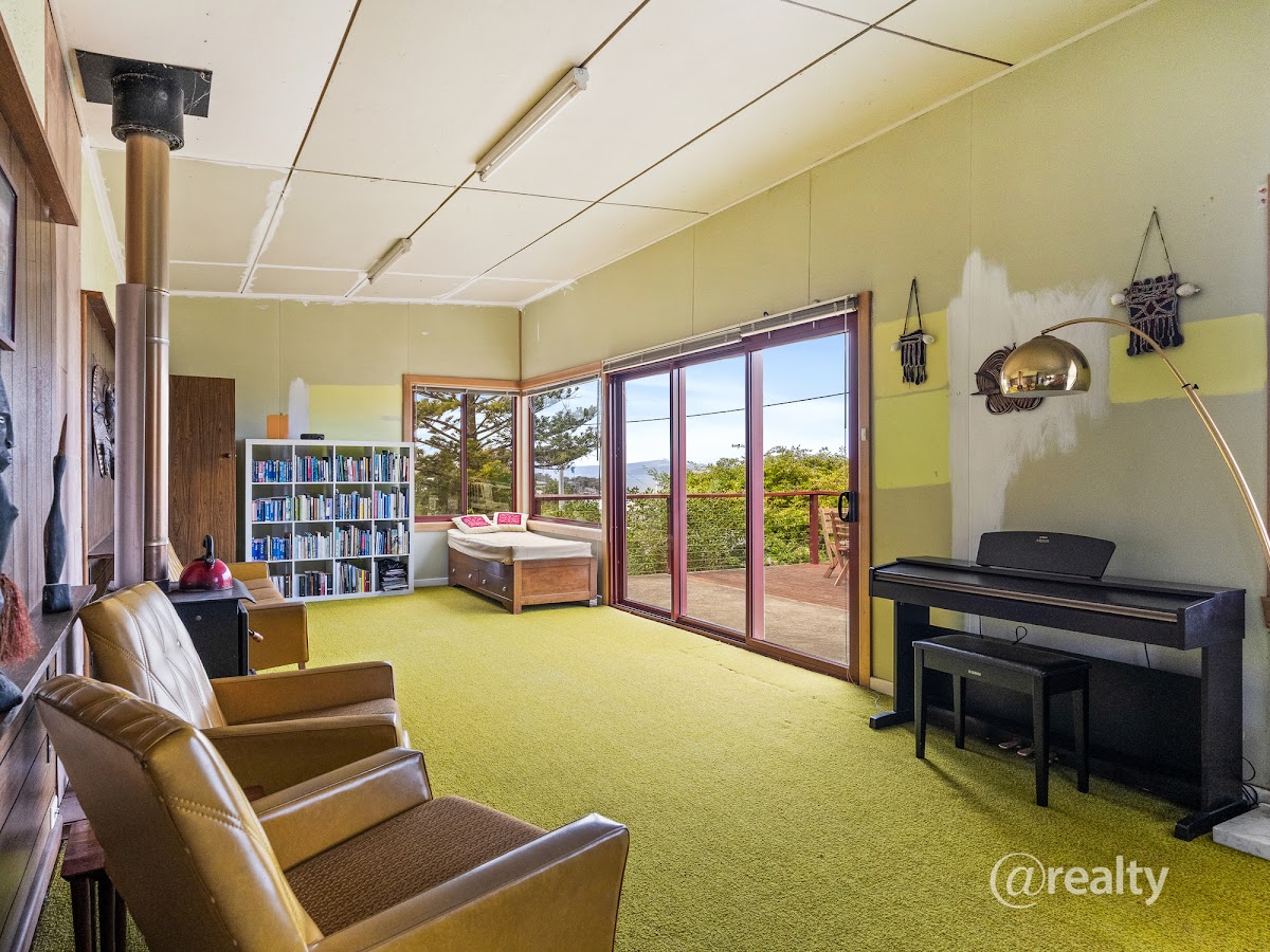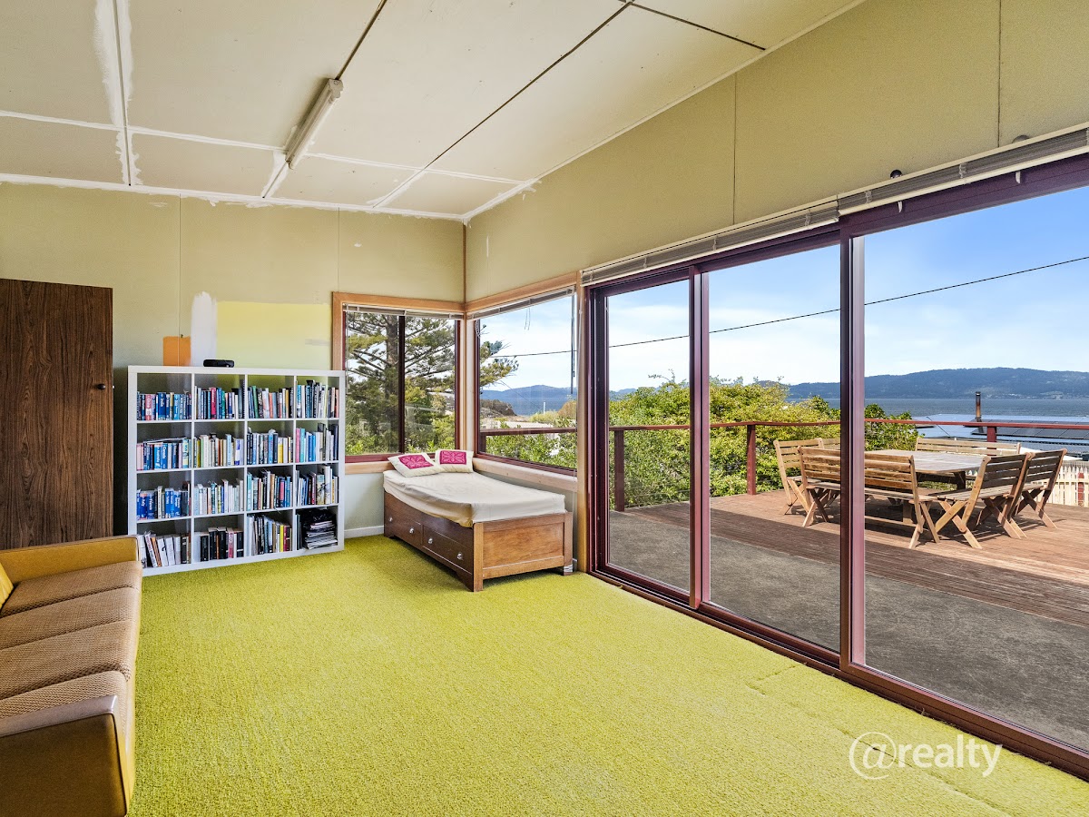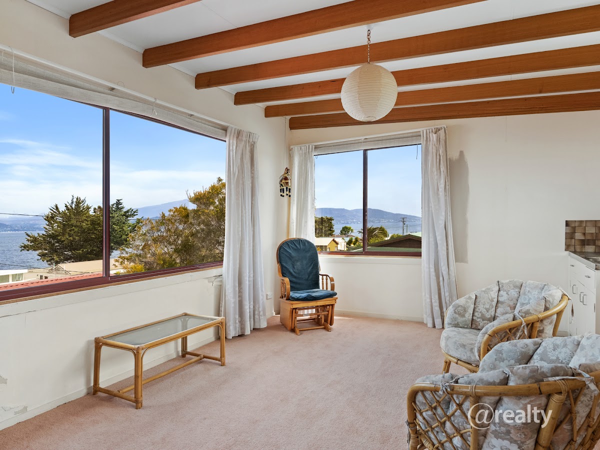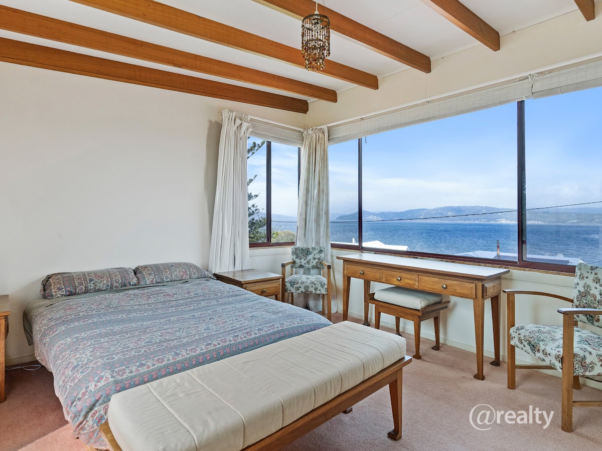 Uniquely positioned on the high side of Gellibrand Lane, the views from this perfect holiday home truly astound, whether on the lower level deck or lounge, or upper level parents retreat the southern views encompass the top of Bruny Island, across to the D’Entrecasteaux Channel, Tinderbox, Blackmans Bay, Kingston, Taroona and Sandy Bay right through to the Tasman Bridge! The upper level takes in additional views of both Glenvar and Opossum Bay beaches, a view rarely achieved if not for the thoughtful design implemented in the 1970s for this wonderfully relaxing home.