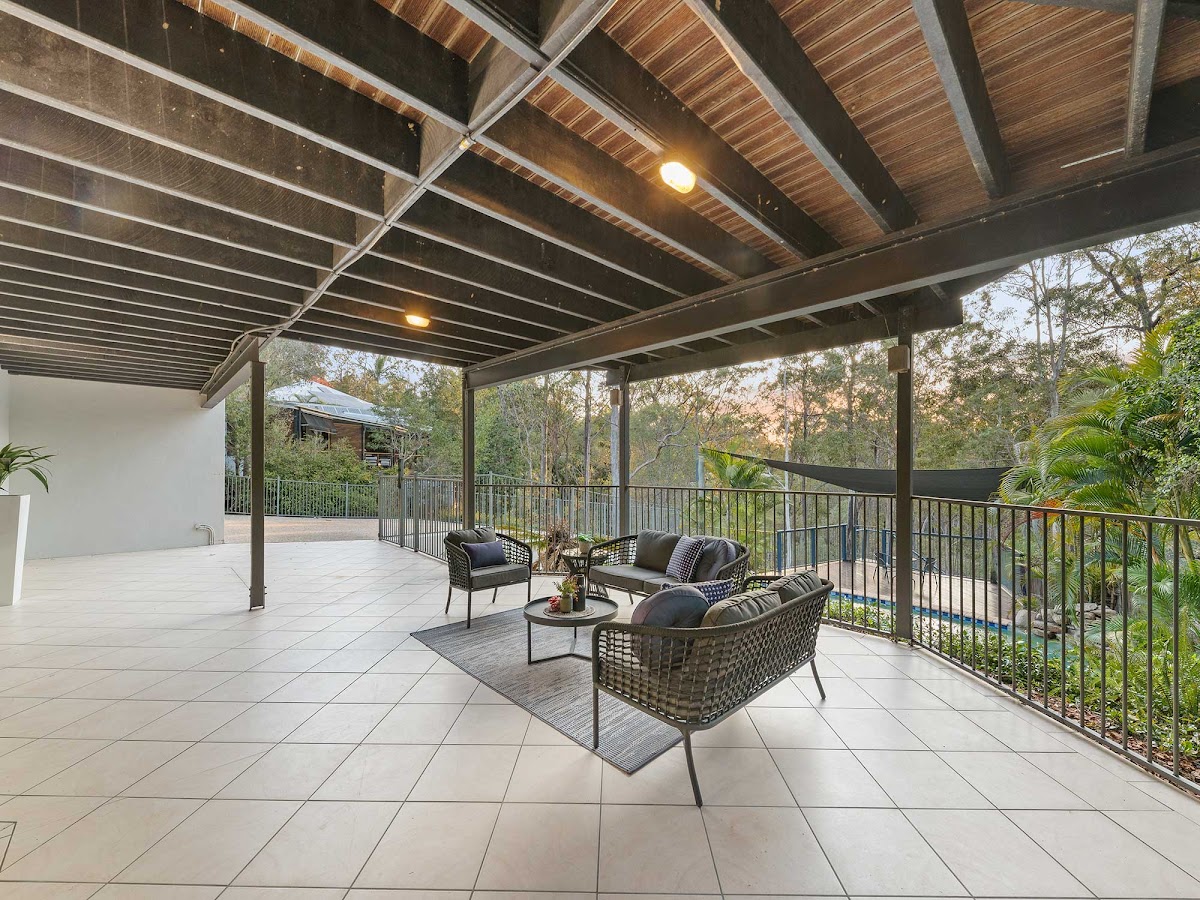 Surrounded by tranquil parkland and the stunning Bunyaville State Forest, in arguably Albany Creek’s finest and most elevated cul-de-sac, this generous 560sqm home on a huge 1930sqm block is a very rare find! Presented over two levels, this property comprises 6 bedrooms, 3 bathrooms, 5 car garaging and endless living areas including a huge rumpus with wet-bar, media room, enormous family room, lounge, dining, entertaining deck and downstairs alfresco overlooking the pool and bushland. The lower level may be ideal for those seeking a separate living space for teens, a potential granny flat or for a large home business (with the second 15-metre-long garage or storeroom). This is definitely one of the finest properties to be released for sale in Albany Creek in quite some years, and certain to impress the most discerning buyer seeking one of the largest of homes in the area.