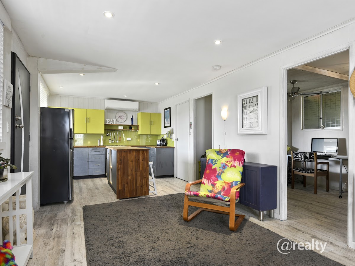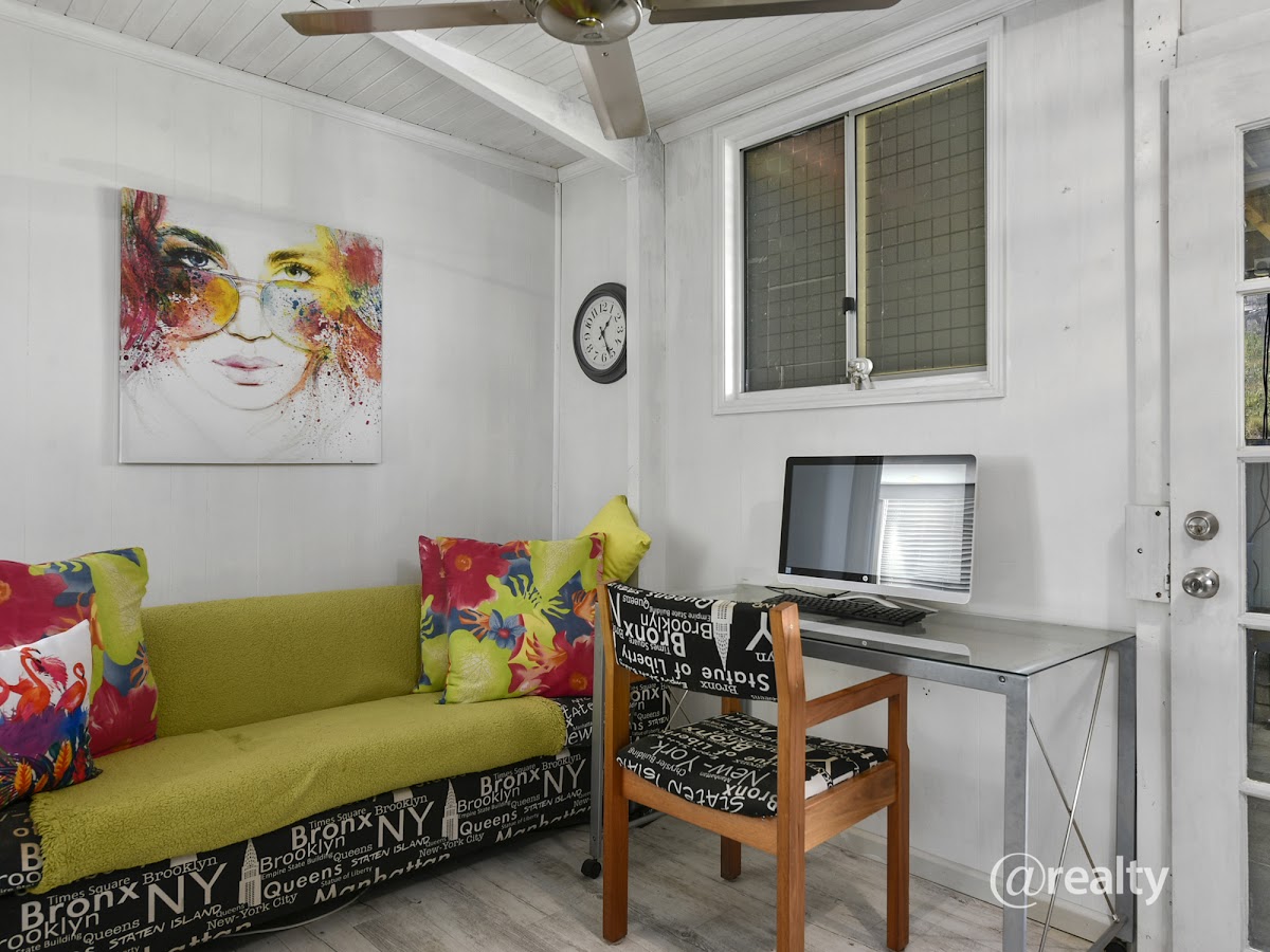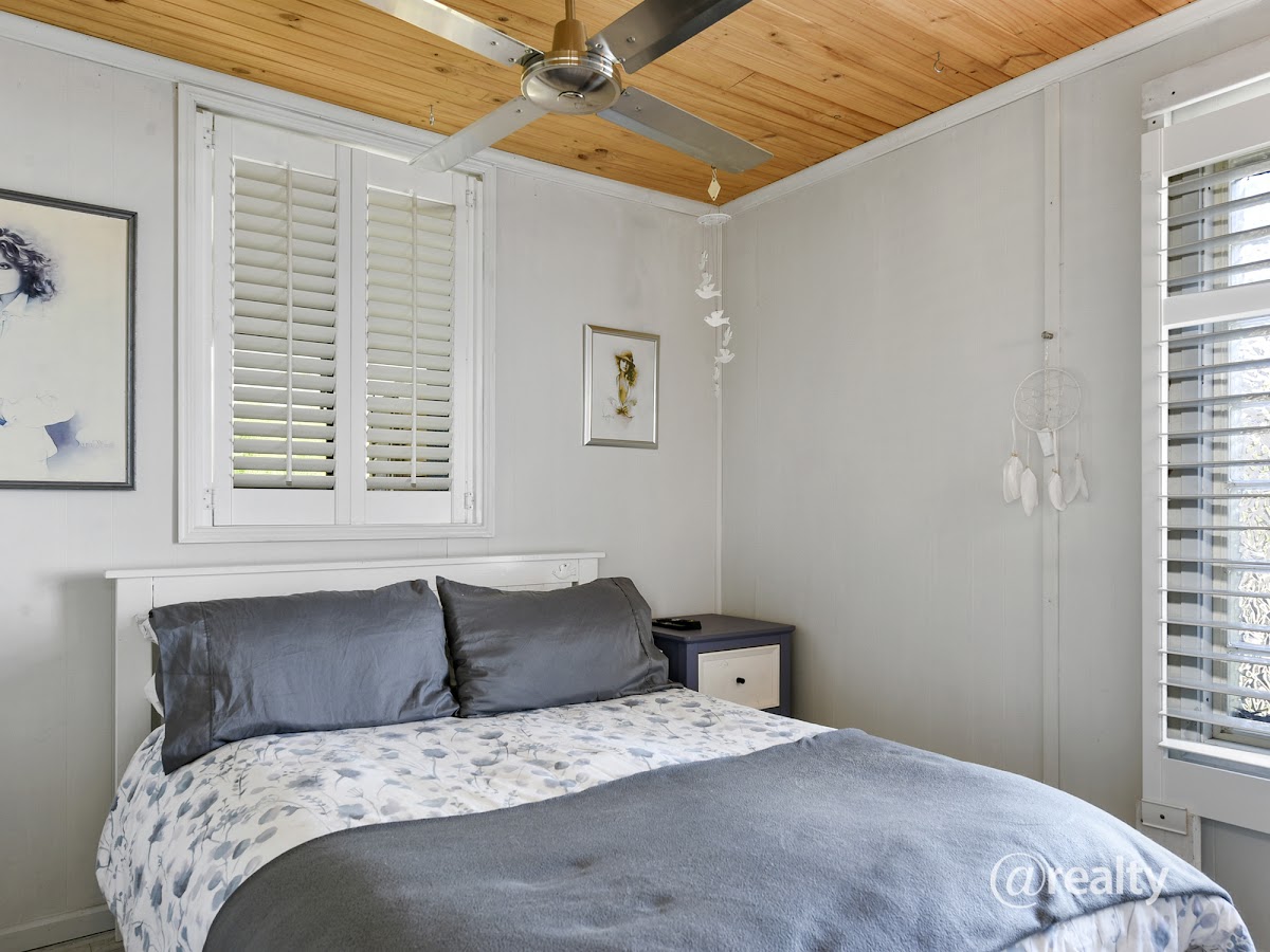 Inside the home boasts 2-3 bedrooms, with the second bedroom having had an internal wall taken down, currently being used as a sitting area. Flowing white washed floors and plantation shutters emit a seaside cottage feel. The property could easily be extended out towards the front {stca} offering a ‘live in now and capitalise later’ opportunity. The current “Completion of Building Workds”, “Plumbing Permit” , and “Certificate of Occupancy” are available on request.