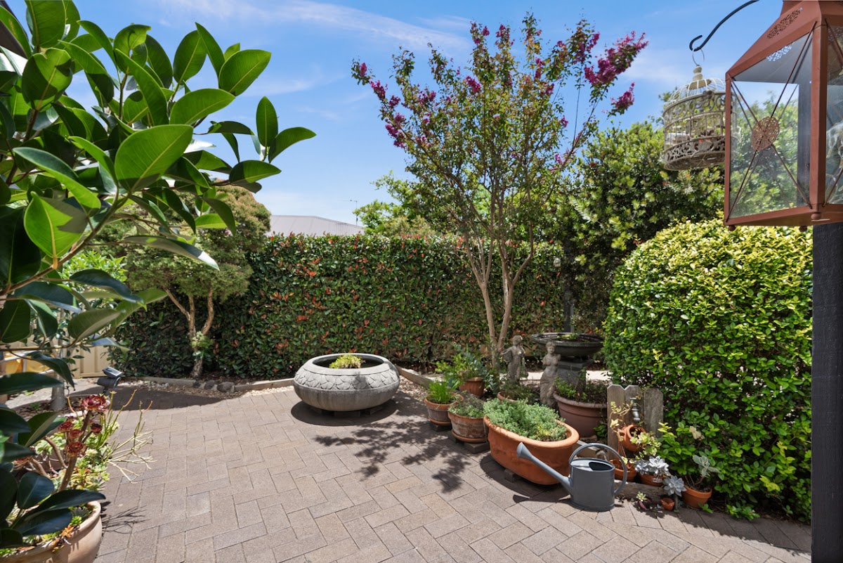 The garden is designed professionally so that it is easy to care for, garden beds are loaded with fertile soil, it only requires limited watering, and one can only describe the backyard as a tranquil Oasis. The garden flourishes with colour at the turn of every season, containing productive fruit trees, flowering orchids, and a variety of deciduous trees.