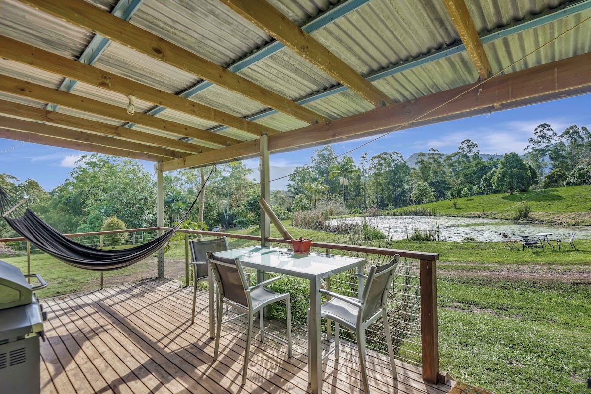 A small jump skip and hop up the driveway you will come across the very attractive cabin which overlooks the dam and onto the Nightcap Ranges. This structure has been freshly painted and is modernised. The deck is a great spot for relaxing and unwinding.