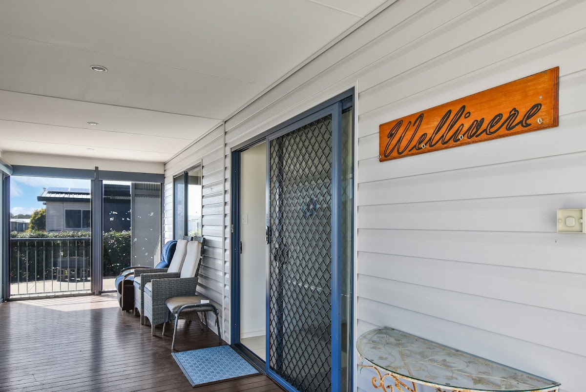 + Large front north facing covered timber deck with spring loaded shade cloth blinds that reach down to the floor.