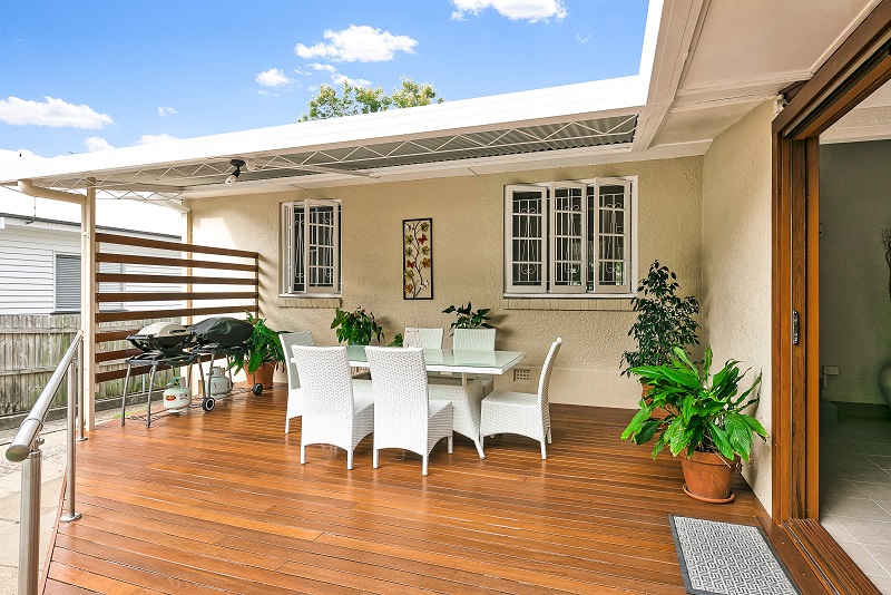 The three bedrooms have built-in-robes, ceilings fans and secured windows to allow the natural breezes to drift through. There are two bathrooms, both of which have been newly renovated. There is also a large study with sliding glass doors to access the timber deck. This could easily be turned into a TV room or another entertaining space. The home has been upgraded with LED lighting.