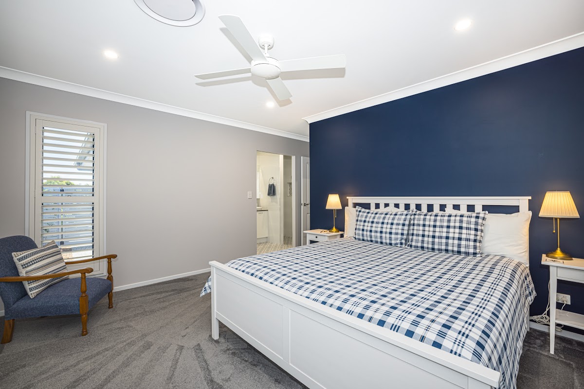 The king-size master bedroom features a large walk-in robe, en-suite with double sinks, Caesar stone bench tops and heated towel rails. The other two queen size bedrooms are zoned away from the master – both have large built-in wardrobes and are served by a beautiful spacious bathroom.