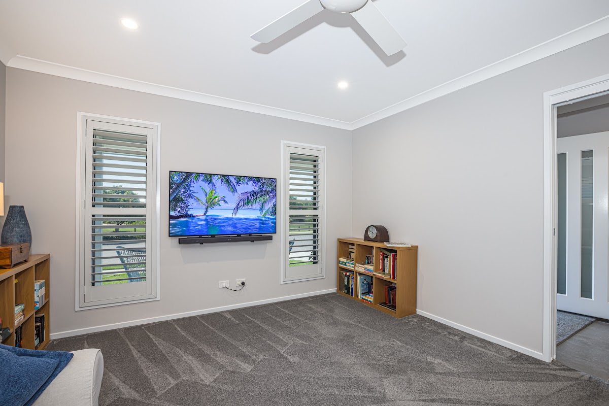 The media room at the front of the home is acoustically insulated and doubles as a peaceful reading room. There is also a very clever study nook equipped with built in desk and even more storage.