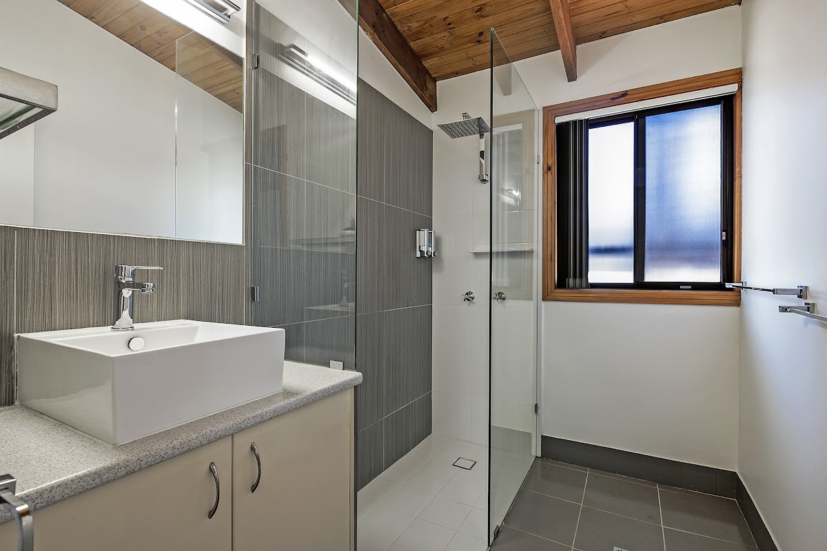 This home has 2 bedrooms – both with built in wardrobes and one with ceiling fan. The master bedroom is also air conditioned. Plenty of room for side tables and chest of drawers and positioned in close proximity to the modern bathroom with large shower and only one glass panel to be cleaned ! Such an easy home to maintain.