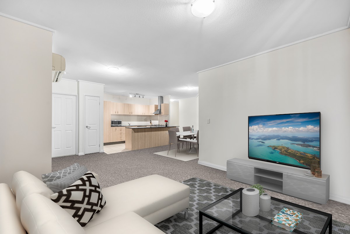 This level 5 apartment in Tower B has much more living space than the average apartment as it offers two separate defined areas capable of accommodating most living room and dining room furniture. You will love the open plan feel with the kitchen connected to everything going on around it, all opening onto a very spacious balcony overlooking the pool area. What a perfect place to soak up the Queensland lifestyle – get up with the sun for a brisk walk along the river then, come sunset, relax and take in the views of the tropical resort style facilities before heading across the road to the iconic Regatta Hotel for dinner.