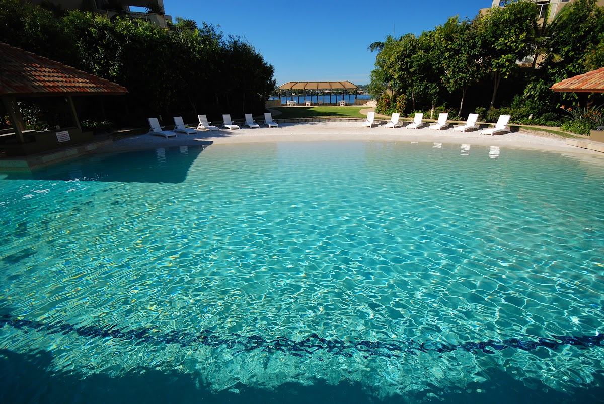 Resort style facilities including lagoon pool, heated spa, steam room, gym and manmade beach, cinema, library and games room.