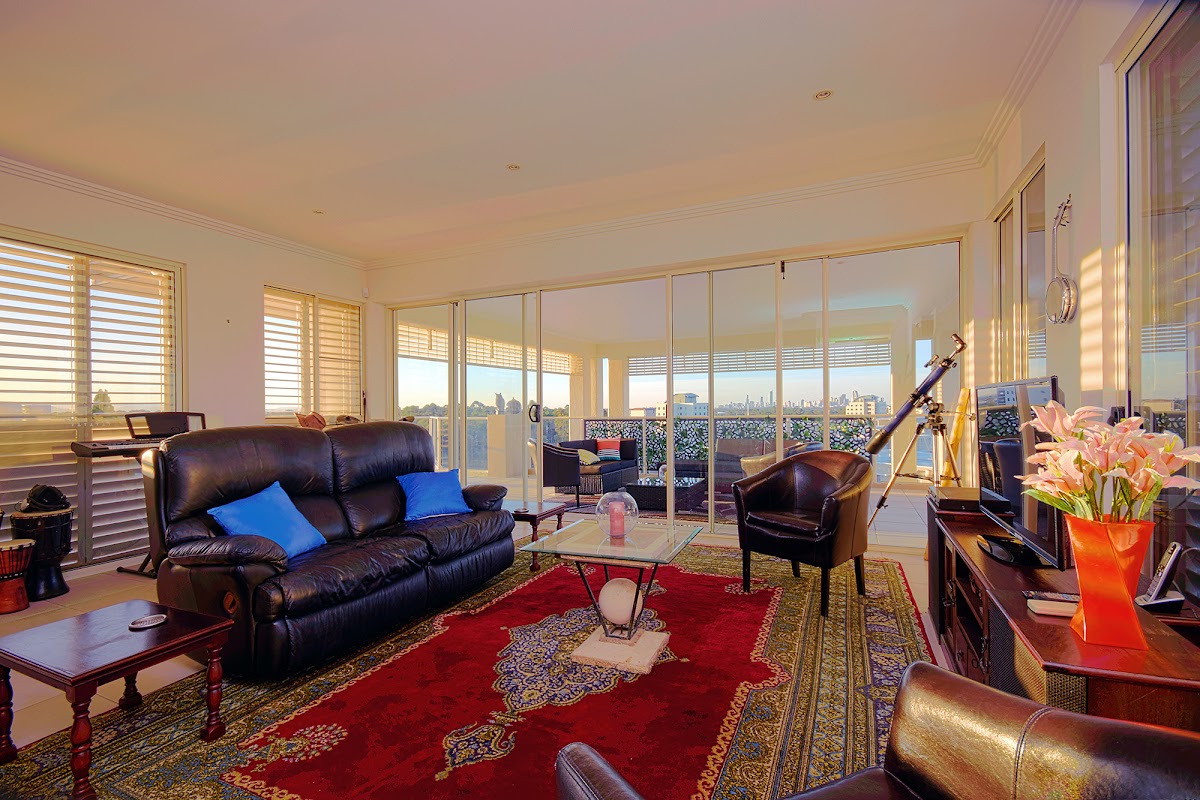 This home sized apartment has Superb Panoramic north easterly views over the water to the coast and city lights.