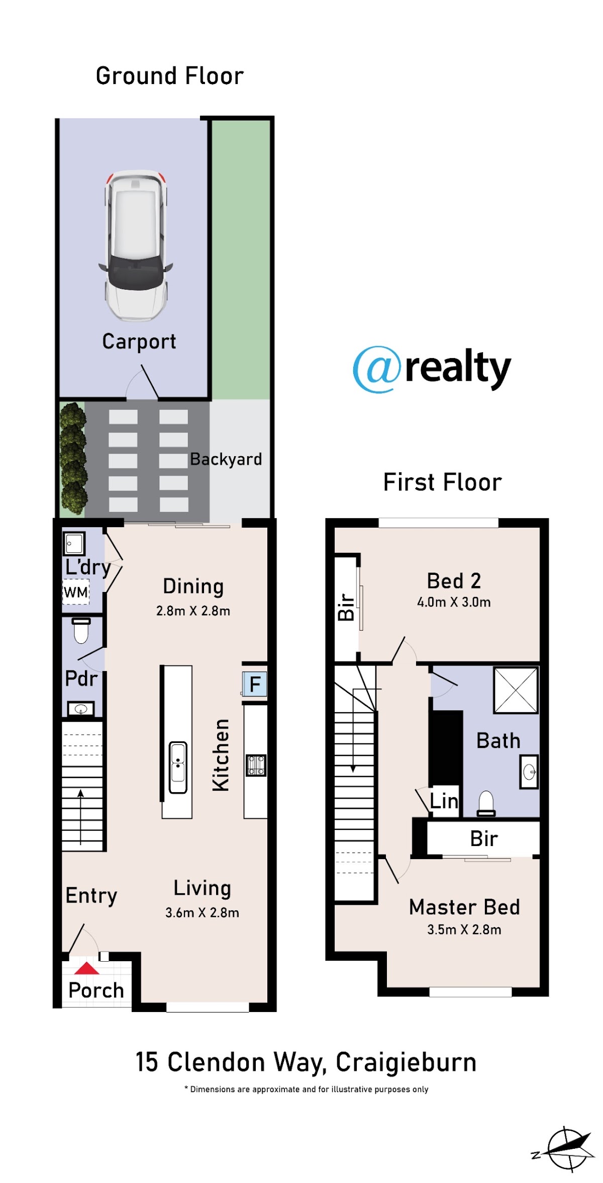 A handy powder room and European laundry complete the downstairs layout, while upstairs you’ll find two generous bedrooms, both with built-in robes and soft carpeting for comfort. The main bedroom enjoys tranquil parkland views, while the main bathroom is central to both bedrooms. There’s also a linen cupboard for added storage, and a single carport with internal access for convenience.