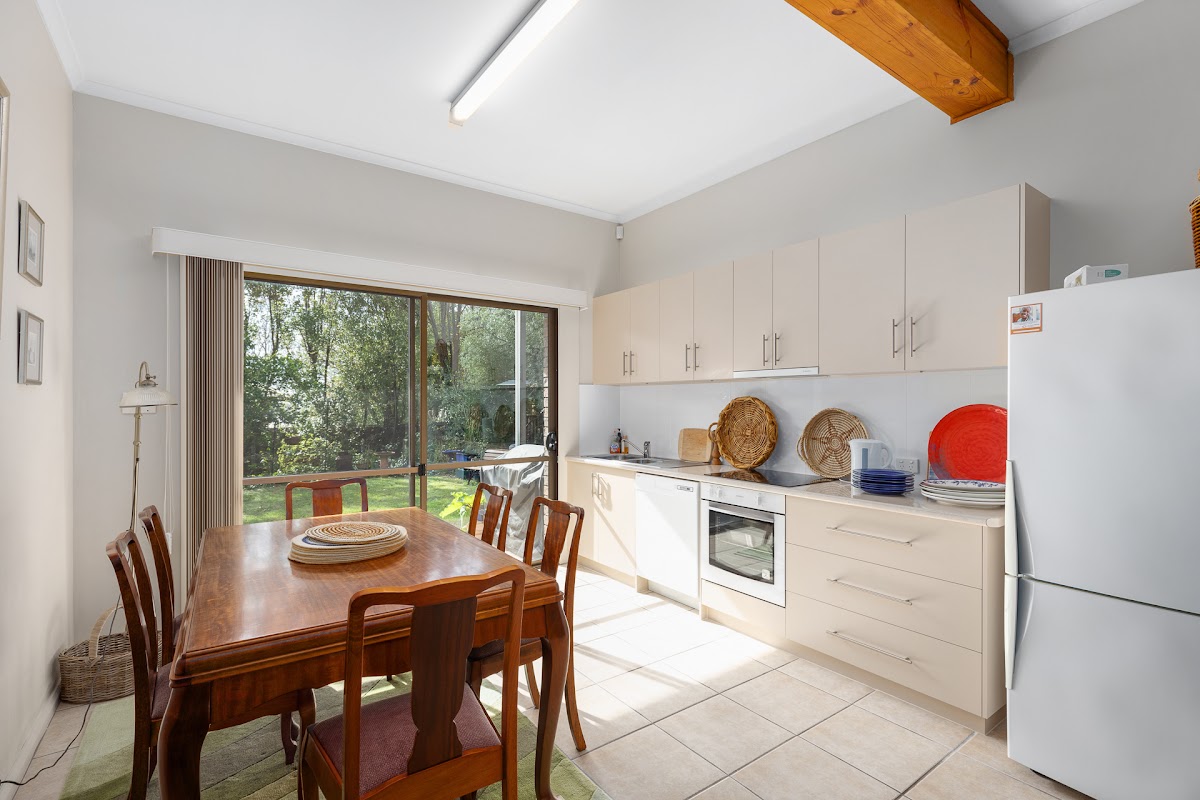Upstairs an open Kitchen meals area, opens to a formal lounge complemented by Northern aspects and views, gas log fire and split system, air-conditioning, stylish kitchen with heaps of cupboards bench space and step in pantry. Bathroom includes a small laundry plus a veranda/patio running the length of the home, would be a great place to sit and relax.