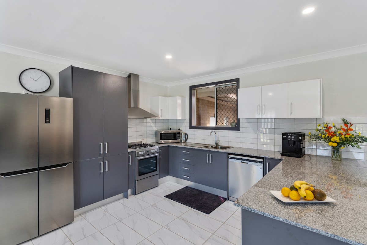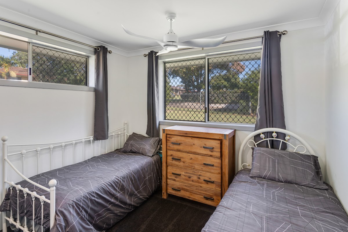The 4 bedroom house with an oversized two car garage, has also a large workshop/shed , outdoor covered entertaining area plus an outdoor shower for you and the dog . Fully fenced back yard with thriving veggie garden and room to park a boat or RV on site.
