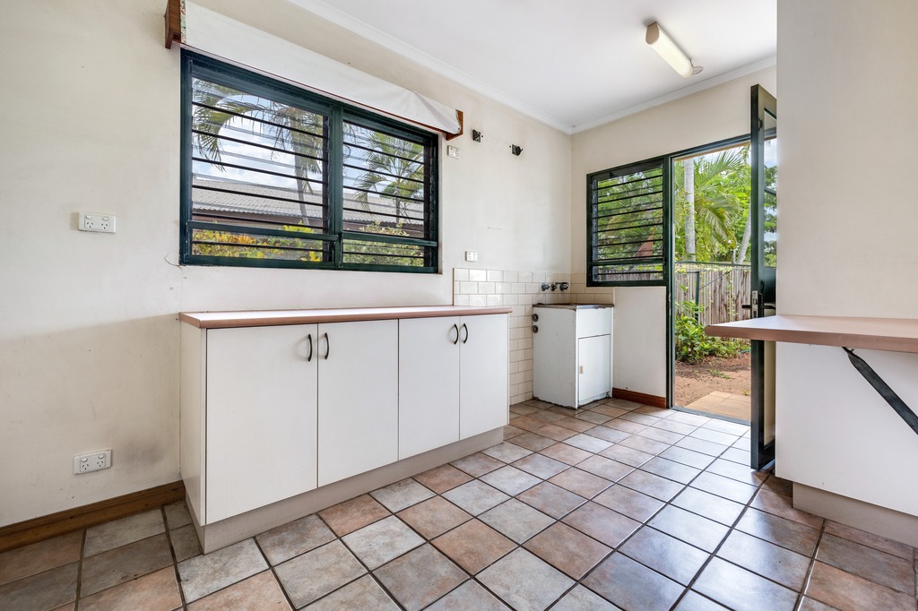 – A large you-shaped kitchen with stone tops and plenty of storage/bench space