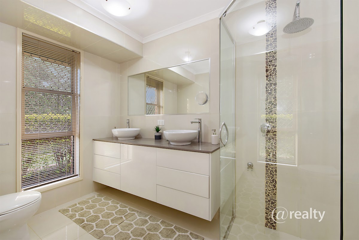 * Generous master suite complete with aircon, a renovated ensuite that exudes modern chic with a wall hung his & hers vanity with stone benchtop, 2pac cabinetry finish with soft close drawers, feature basins & perfectly finished with floor to ceiling tiles