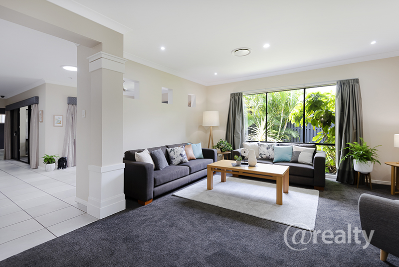 As you enter the home and pass the decorative fish pond you enter through the large portico with timber flooring feature. Once you enter through the entry you are immediately delighted by the wide and spacious foyer. You will be dazzled by the new home look and feel and the sense of security, privacy, space and of happiness.