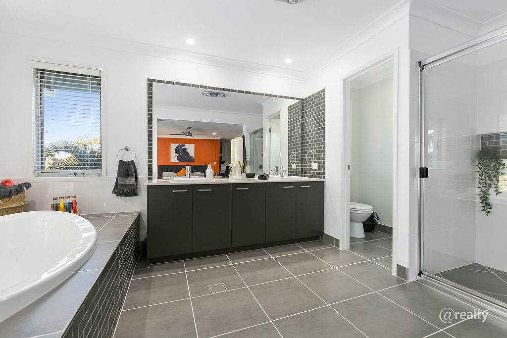 Internal stairs take you to the upper level which offers a separate leisure area separating the three additional good sized bedrooms from the Master Suite. The suite is perfectly positioned at the rear of the home and is flooded with natural light. This room has it all, a spacious walk through robe, a stunning en-suite with stone tiled flooring, porcelain his and hers sinks, a generous shower plus a large, sunk in bath.