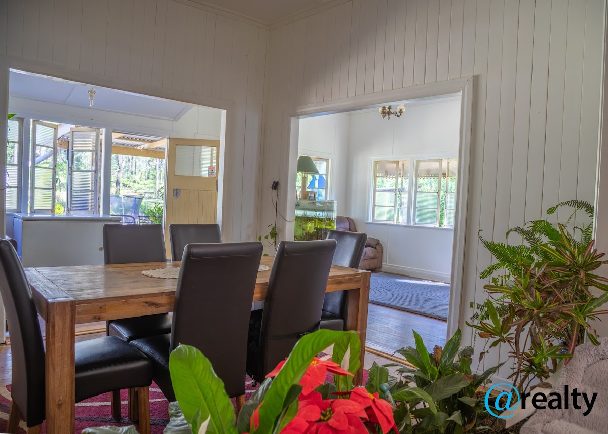 The home sits on concrete stumps and has high ceilings and ornate trimmings throughout. Featuring four oversized bedrooms, lounge and dining rooms, plus a rumpus room for the family to spread out. Main bedroom is air-conditioned, and there’s a front and back verandah to enjoy the bush views.