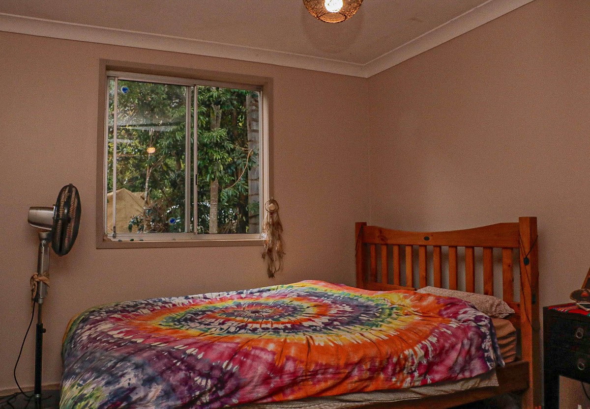 The home has a quirky, unique character as it was built in stages. However, it is in need of some TLC to make it comfortable in the modern day. Lots of timber has been used in the construction of this home. High ceilings are featured in the open plan living area with gorgeous views over the garden with glimpses of the Nightcap Range.