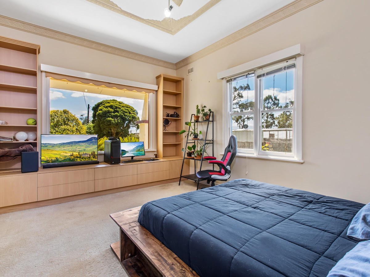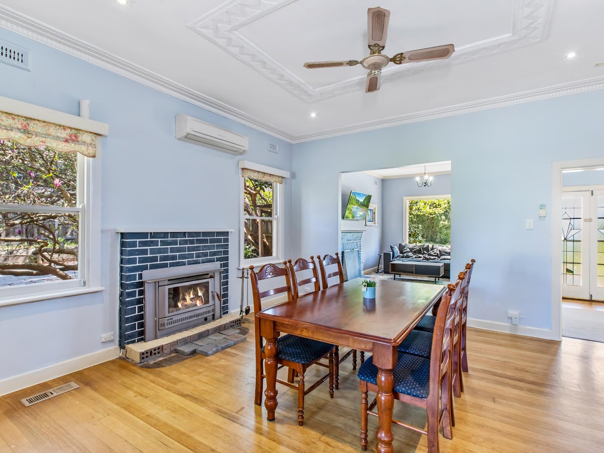 The spacious character home is an exceptional example of a Californian Bungalow and retains many of the period features, including high ceilings, polished floors, led light doors and windows, ornamental cornices, ceilng roses and cosy fire place.