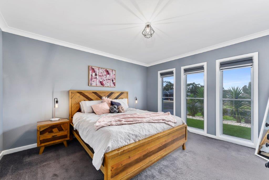 3 LARGE BEDROOMS 2 WITH BUILT IN ROBES AND THE MAIN BEDROOM HAVING LARGE WALK IN ROBE, LUXURIOUS. EN-SUITE WHICH COMPLEMENTS THIS PRIVATE AREA. THE OTHER WET AREAS IN THE HOME ARE FINISHED TO THE SAME QUALITY.