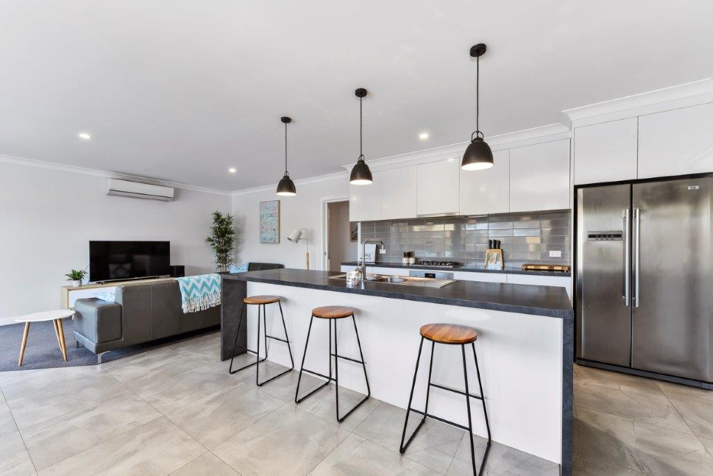 SPACIOUS OPEN PLAN LIVING GIVES YOU ROOM FOR MEALS , FAMILY AREA PLUS CASUAL LIVING COMPLEMENTED BY A MODERN KITCHEN, INCLUDING WALK IN PANTRY AND STAINLESS STEEL APPLIANCES.