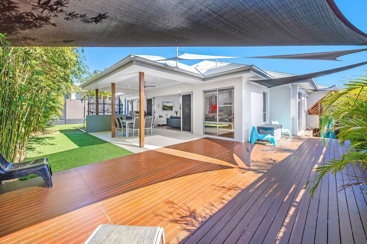 Very private, well designed and perfectly located in the lovely Genesis Estate Coomera this modern design, well appointed property features all the creature comforts a family needs. From a very welcoming entry through the timber pivot door to the modern kitchen, media / lounge room to the open plan living, huge entertaining area and very private back yard complete with timber children’s play centre, this property is sure to tick all the boxes.