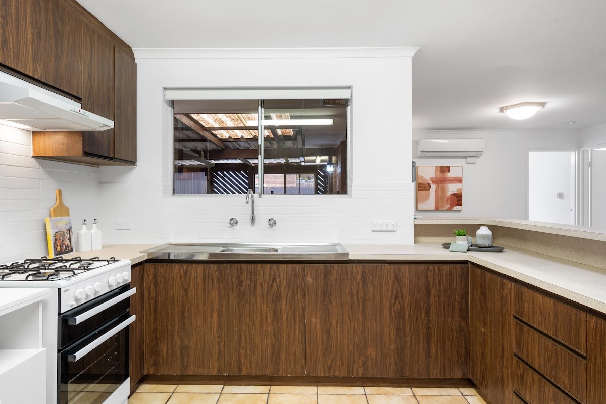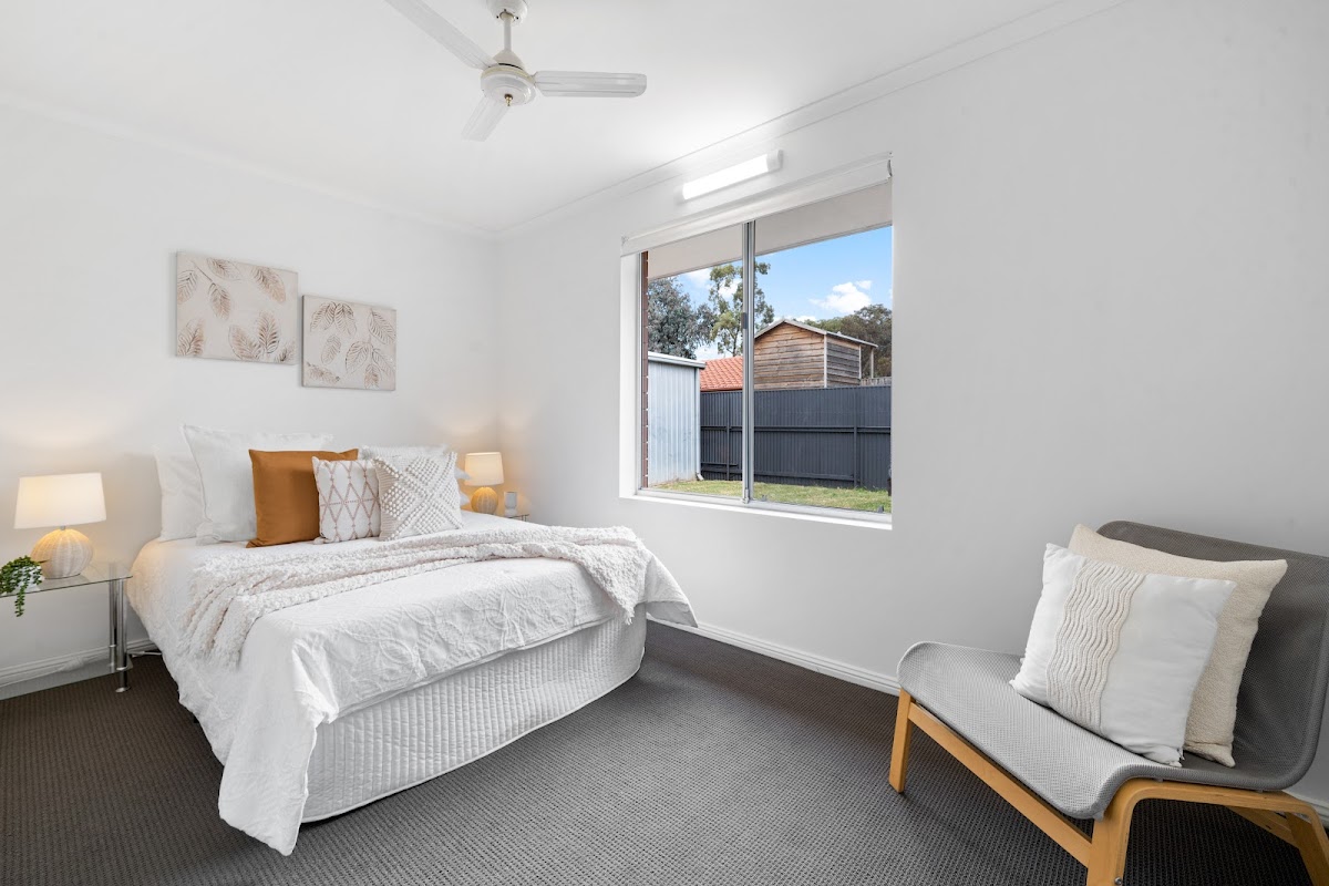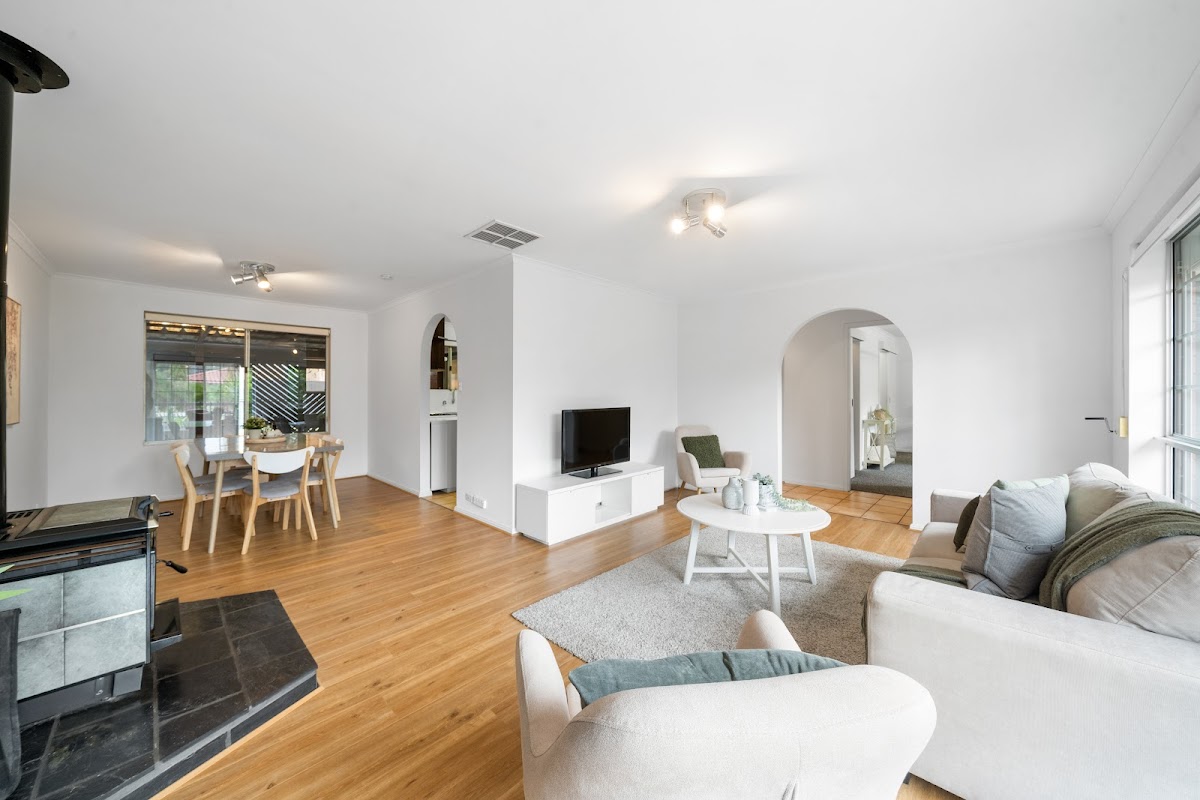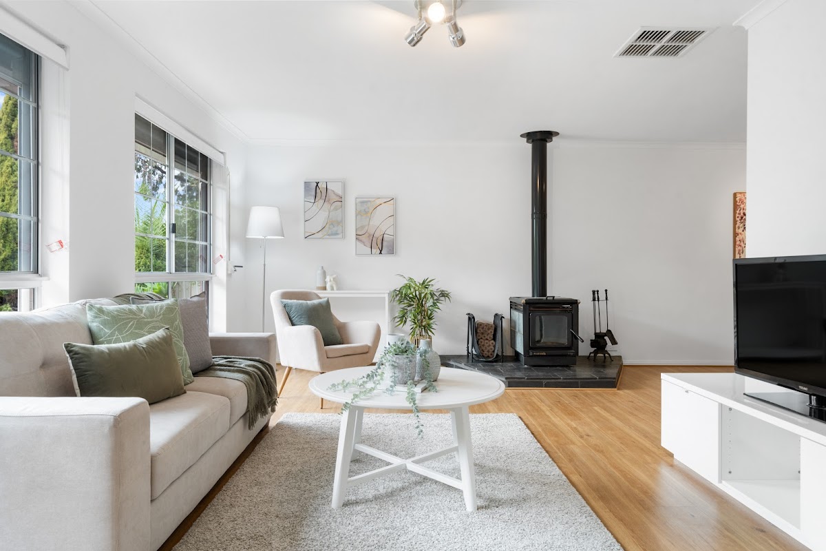 Situated in a lovely, quiet street, this 3 bedroom, one bathroom home has 2 good size living area’s inside with another entertaining area undercover, just out the back. The kitchen overlooks the family area and there is a sliding door leading out to the under cover entertaining area. The master bedroom has a spacious walk in robe and a walk-through bathroom. The home has been given a fresh paint throughout with brand new carpets in all 3 bedrooms. There is a cosy wood combustion fire in the lounge and split system reverse cycle air conditioners in the family room and Master bedroom. There is also evaporative ducted cooling throughout.