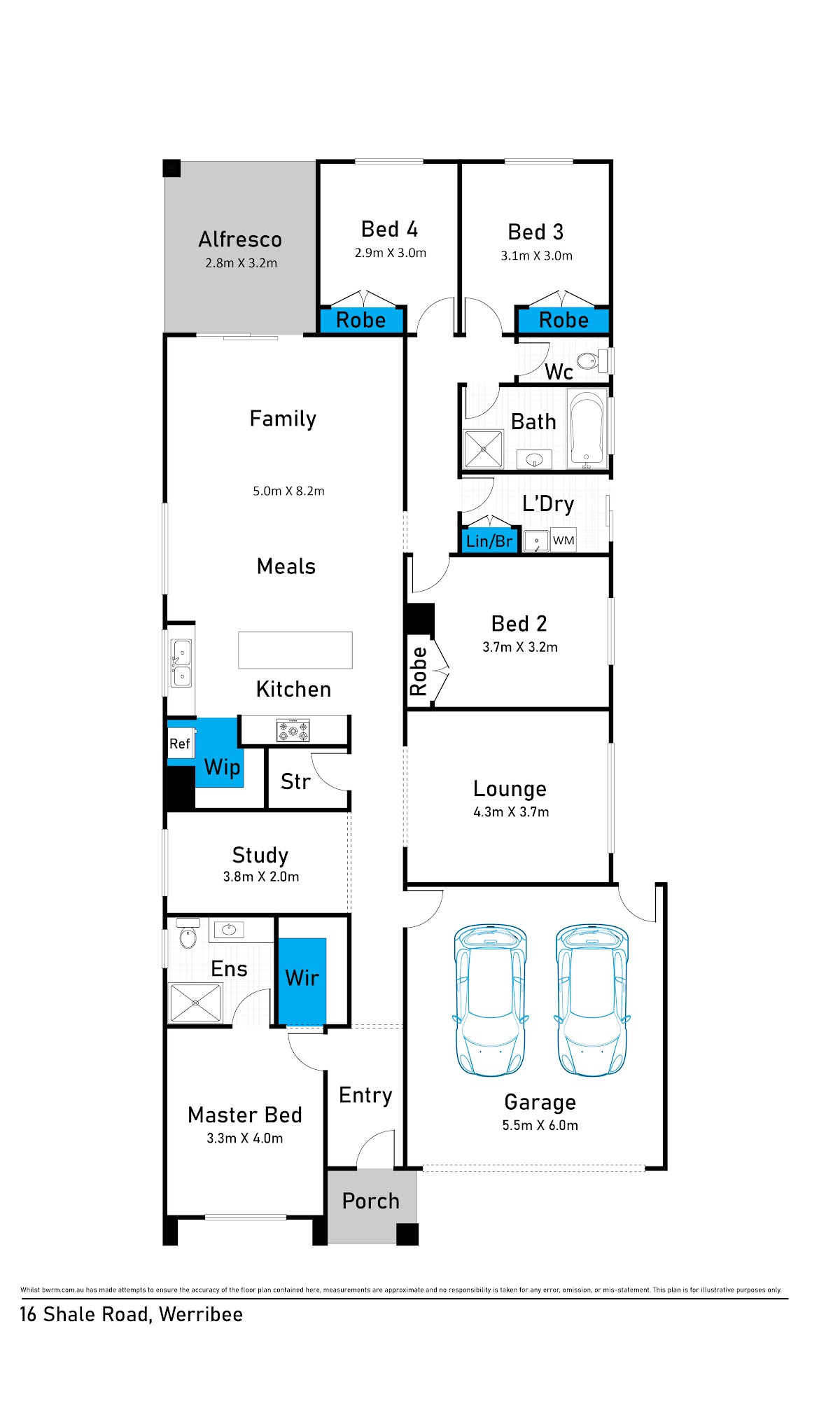 Boasting four spacious bedrooms, a dedicated study, and two generous living zones, this home has been crafted with families in mind. The master suite offers a peaceful retreat with a walk-in robe and private ensuite, while the remaining bedrooms feature built-in robes and share a stylish central bathroom. Whether you’re working from home, entertaining guests, or simply enjoying quality family time, there’s a space for every mood and moment.