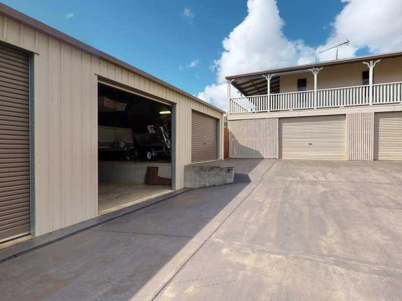 The shedding is something special that everyone wishes they could have. The main shed has 2 bays with high access doors, and one other bay at a slightly reduced height. There are 2 secure parking bays under the home as well giving easy parking for at least 5 vehicles including the high access bays for your Caravan or RV.