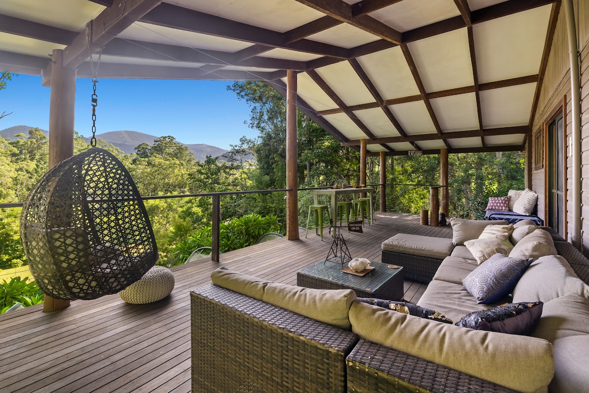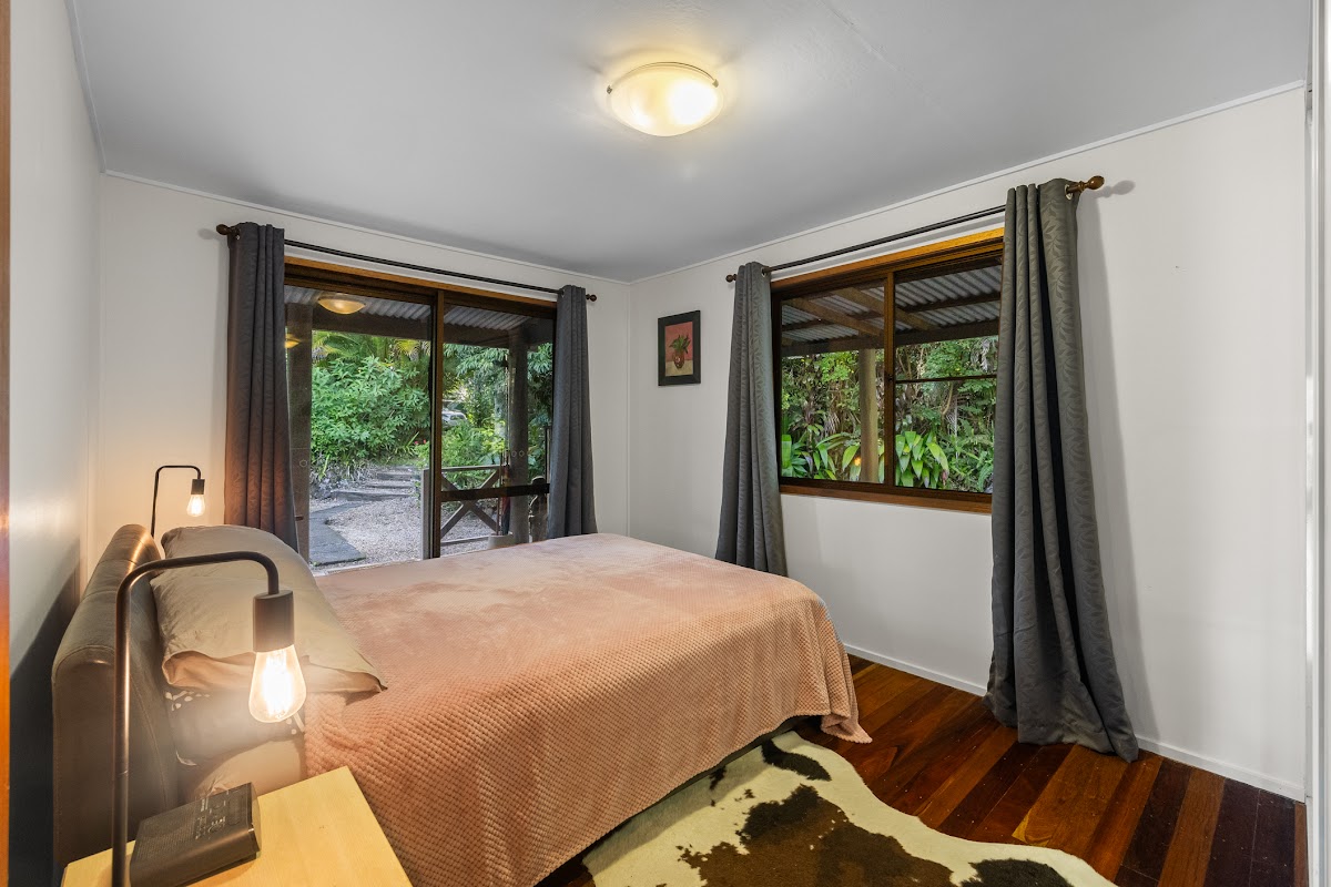 A private sanctuary just five minute’s drive from Nimbin village, this beautifully updated timber home offers the perfect blend of space, comfort, and self-sufficiency. Set on a picturesque 4.29 acre parcel, the property features lush tropical gardens, open green spaces, and breathtaking mountain views—an ideal retreat for those seeking a relaxed, sustainable lifestyle.