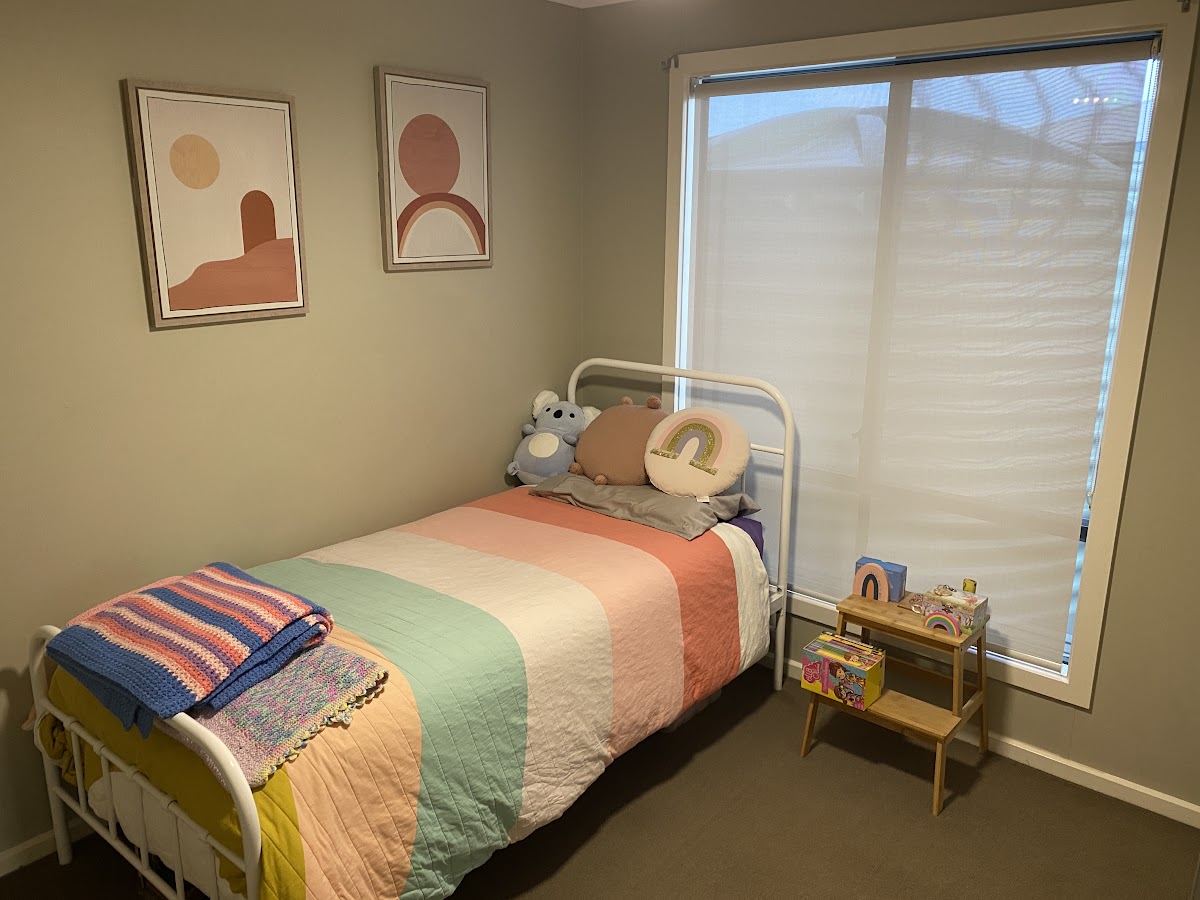 There is undercover parking for 2 vehicles, space for kids to play outside and also a garden shed.