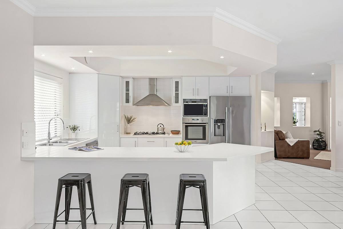 Enjoy poolside or get amongst the sunshine and garden surrounds, which all meld to the light-filled kitchen, family, and dining areas, undoubtedly the heart of the home—offering a perfect setting for family gatherings while keeping the chef happy, mingling and preparing culinary delights in a well-equipped kitchen.