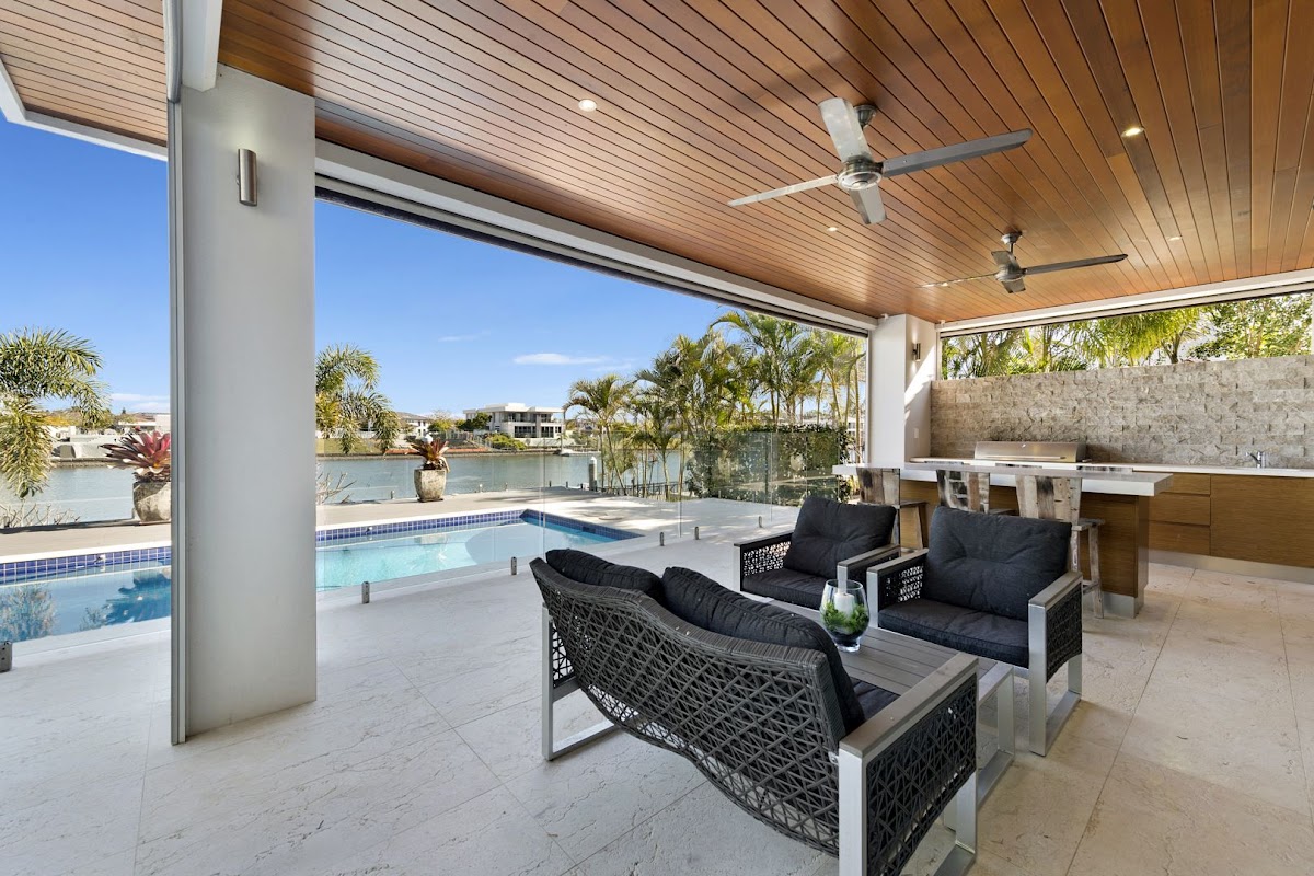 As you enter this magnificent front entrance through this two level home, with beautiful marble floors that expand the length of the home. Glass sliding doors open to timber decks and courtyards. Spectacular views of Hope Island Resort grand canal, huge swimming pool, entertainers kitchen/scullery, Miele appliances, wine cellar, floating timber staircase, just a few features of this fabulous home, watch the sun setting over the mountains or the boats cruise by, Relax chilled living at its absolute best.