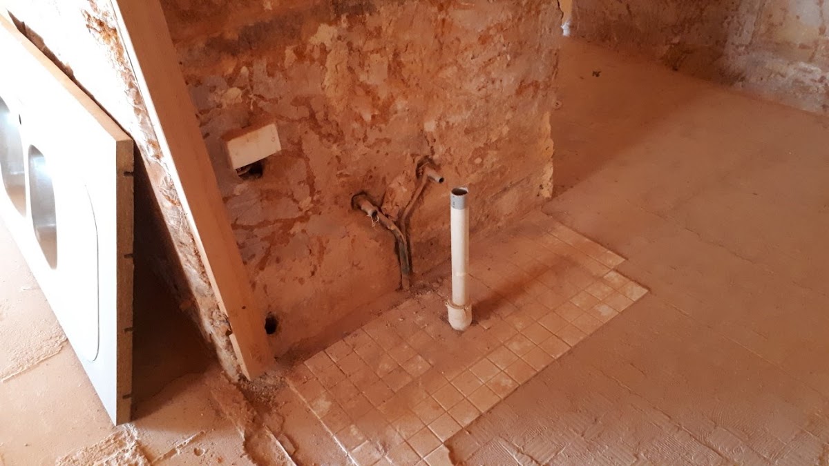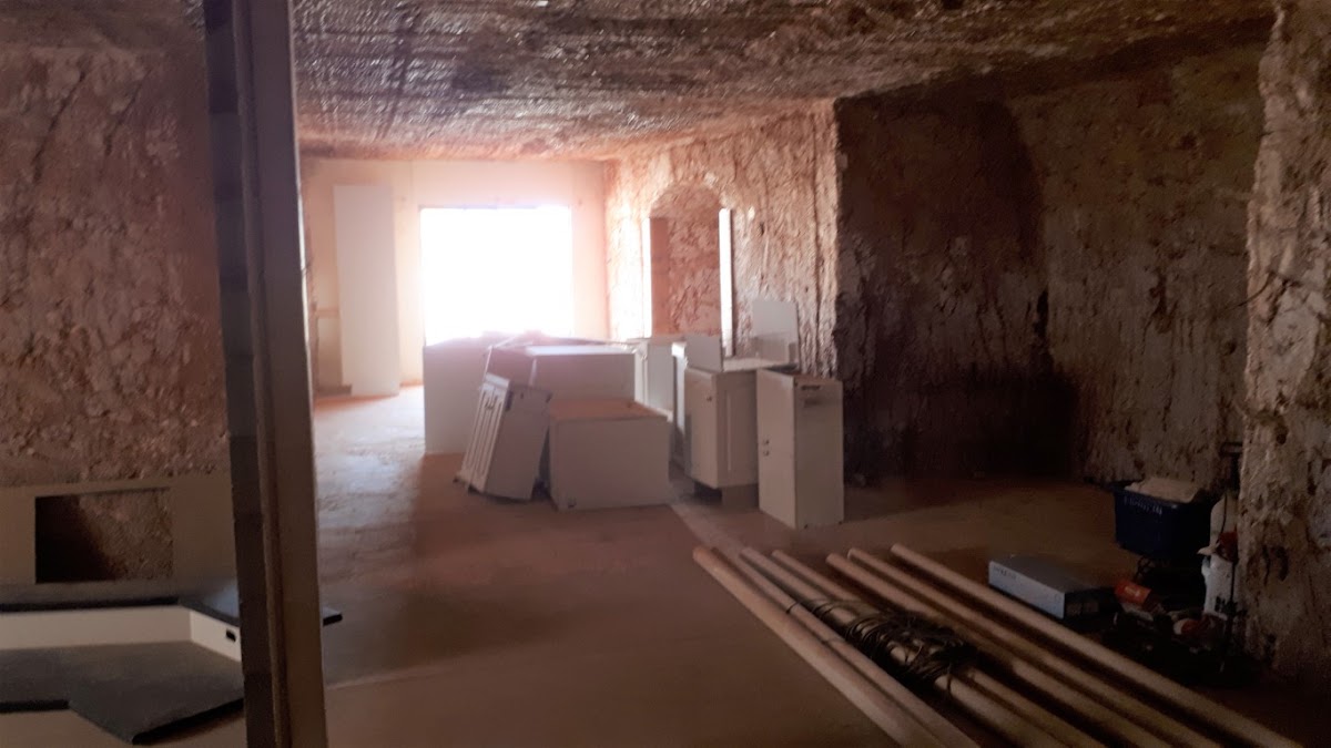 LARGE EXCAVATED DUGOUT NEEDING FINISHING TOUCHES - LOT OF CABINETRY AND BATHROOM FITTINGS INCLUDED