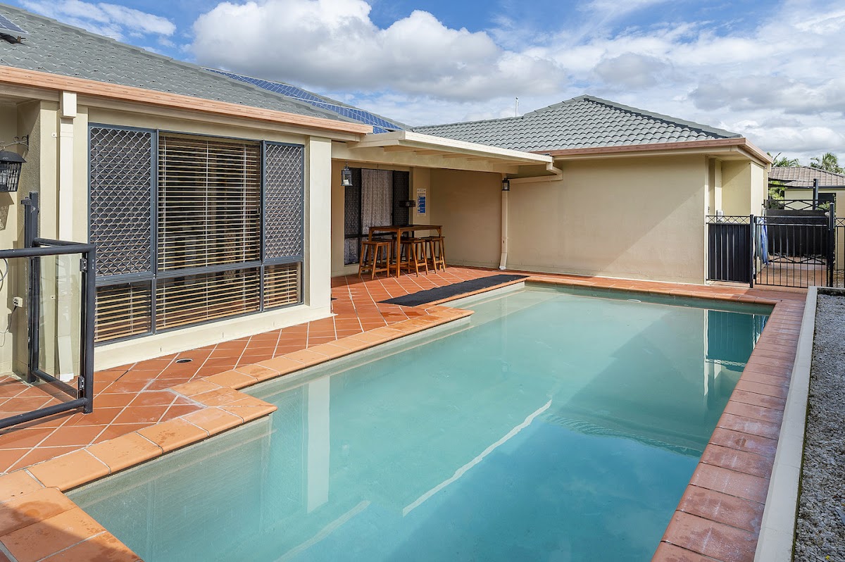 2 sets of sliding doors opening to fully fenced salt water pool